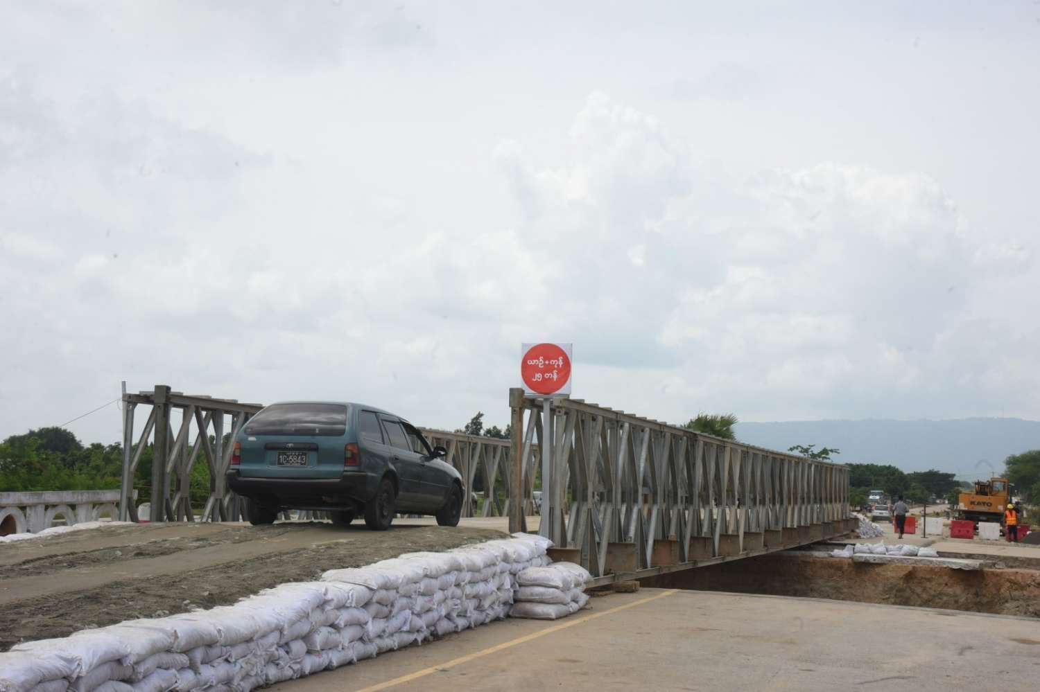 ပျက်စီးမှုဖြစ်ပေါ်ခဲ့သည့် နဝင်းချောင်းတံတား (အဆုံ) အား ယာယီဘေလီတံတားထိုး၍ တည်ဆောက်ပြုပြင်နေမှု
