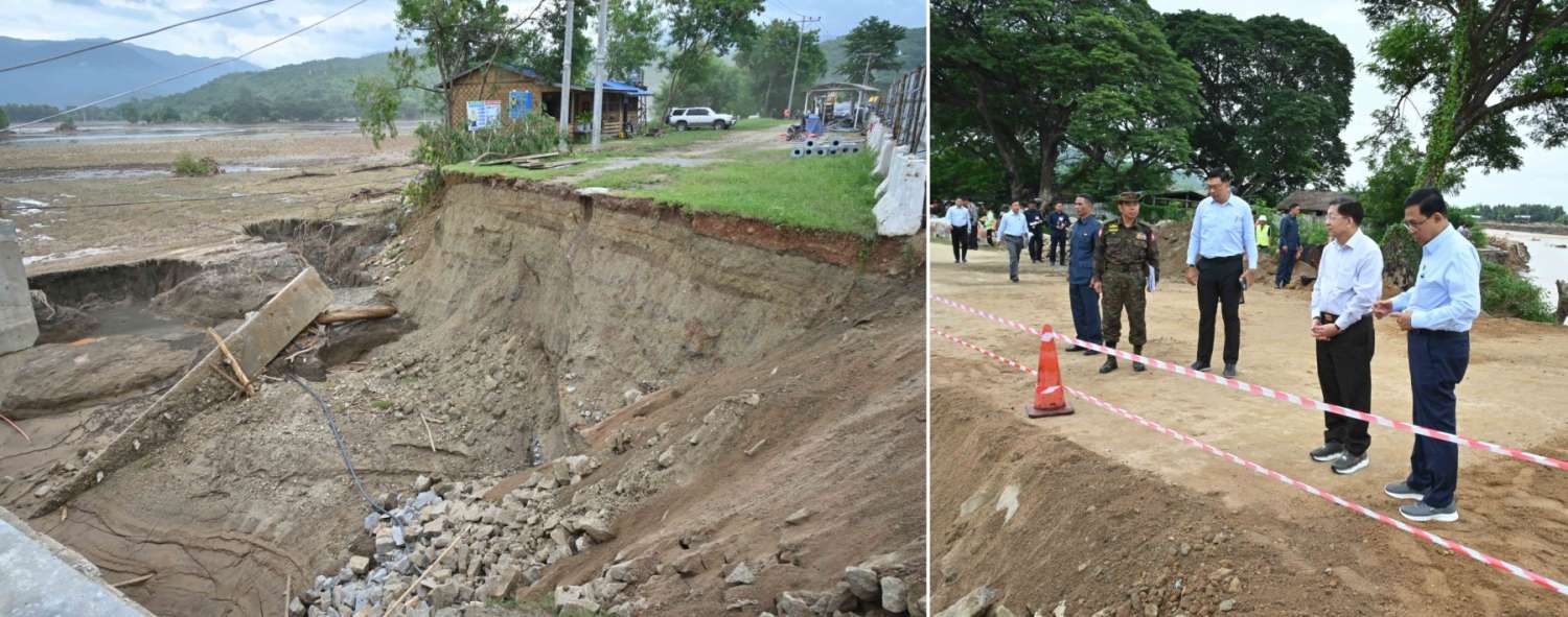 ယင်းနောက် နိုင်ငံတော်စီမံအုပ်ချုပ်ရေးကောင်စီဥက္ကဋ္ဌ နိုင်ငံတော်ဝန်ကြီးချုပ်သည် ကင်းသာလမ်းခွဲနေရာ၌ ရေတိုက်စားမှုကြောင့် လမ်းကြောင်းပျက်စီးနေမှုအခြေအနေများကို ကြည့်ရှုစစ်ဆေးကာ အပျက်အစီးများ ဖယ်ရှားရှင်းလင်းခြင်းနှင့် ပြန်လည်ပြုပြင်ခြင်းလုပ်ငန်းများကို အမြန်ဆုံးဆောင်ရွက်သွားရန် လိုအပ်သည်များ လမ်းညွှန်မှာကြားသည်။