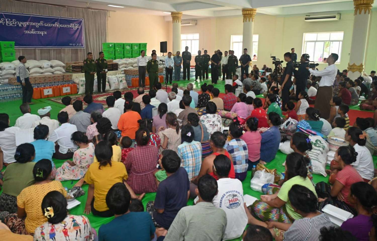 ဆက်လက်ပြီး ကောင်စီတွဲဖက်အတွင်းရေးမှူး၊ ကျန်းမာရေးဝန်ကြီးဌာန ပြည်ထောင်စုဝန်ကြီး၊ လူမှုဝန်ထမ်း၊ ကယ်ဆယ်ရေးနှင့်ပြန်လည်နေရာချထားရေးဝန်ကြီးဌာန ပြည်ထောင်စုဝန်ကြီး၊ နေပြည်တော်ကောင်စီဥက္ကဋ္ဌ၊ ကာကွယ်ရေးဦးစီးချုပ်ရုံးမှ တပ်မတော်အရာရှိကြီးတို့က ရေဘေးသင့်ပြည်သူများအတွက် ထောက်ပံ့ရေးပစ္စည်းများနှင့် စားသောက်ဖွယ်ရာပစ္စည်းများကို အသီးသီးထောက်ပံ့ပေးအပ်ကြသည်။
