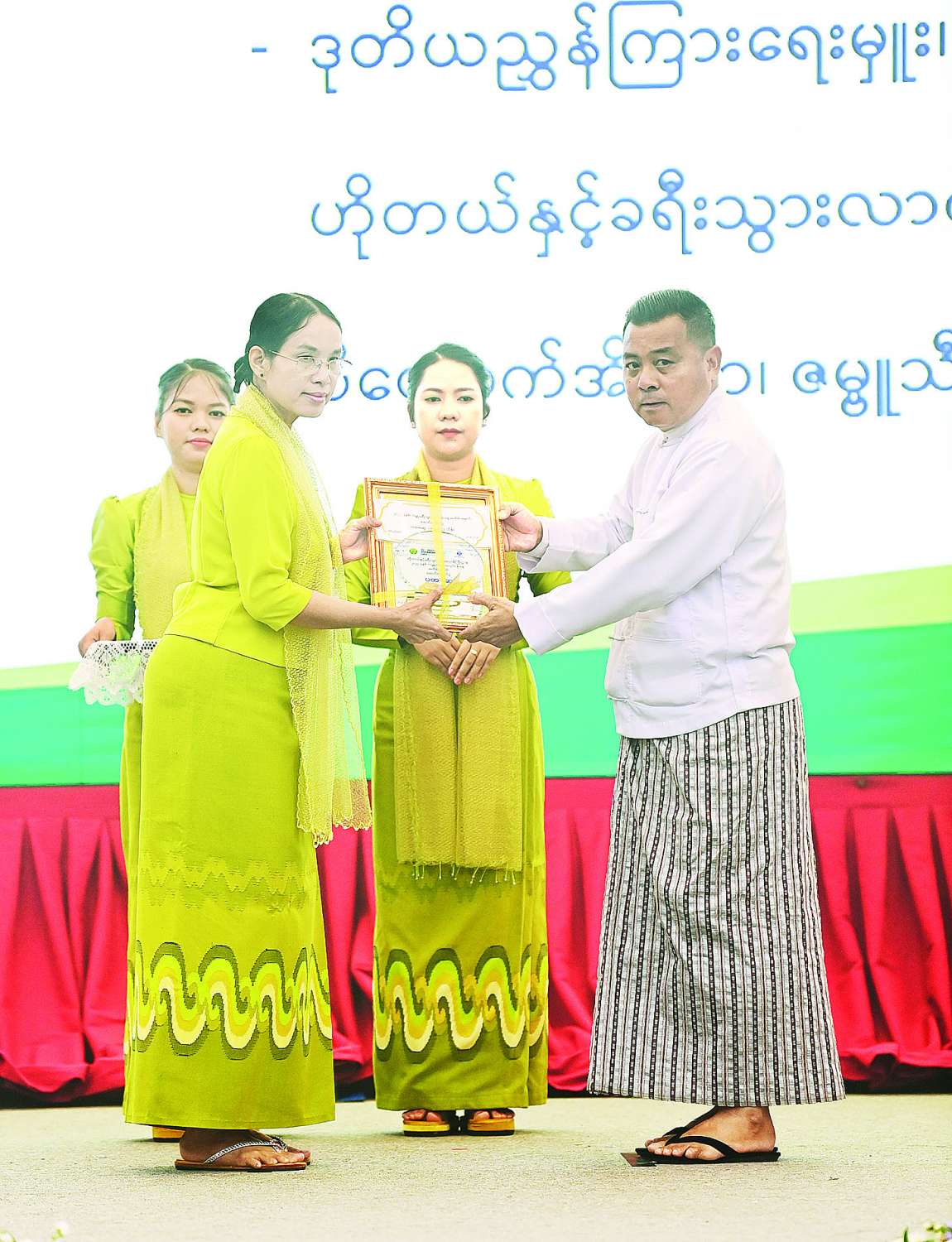 ယင်းနောက် နိုင်ငံတော်စီမံအုပ်ချုပ်ရေးကောင်စီဥက္ကဋ္ဌ နိုင်ငံတော်ဝန်ကြီးချုပ်နှင့် အဖွဲ့ဝင်များသည် ဆုရရှိသူများနှင့်အတူ စုပေါင်းမှတ်တမ်းတင်ဓာတ်ပုံရိုက်ကြသည်။
