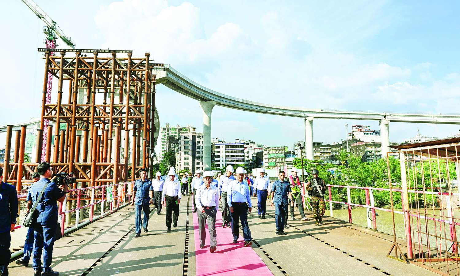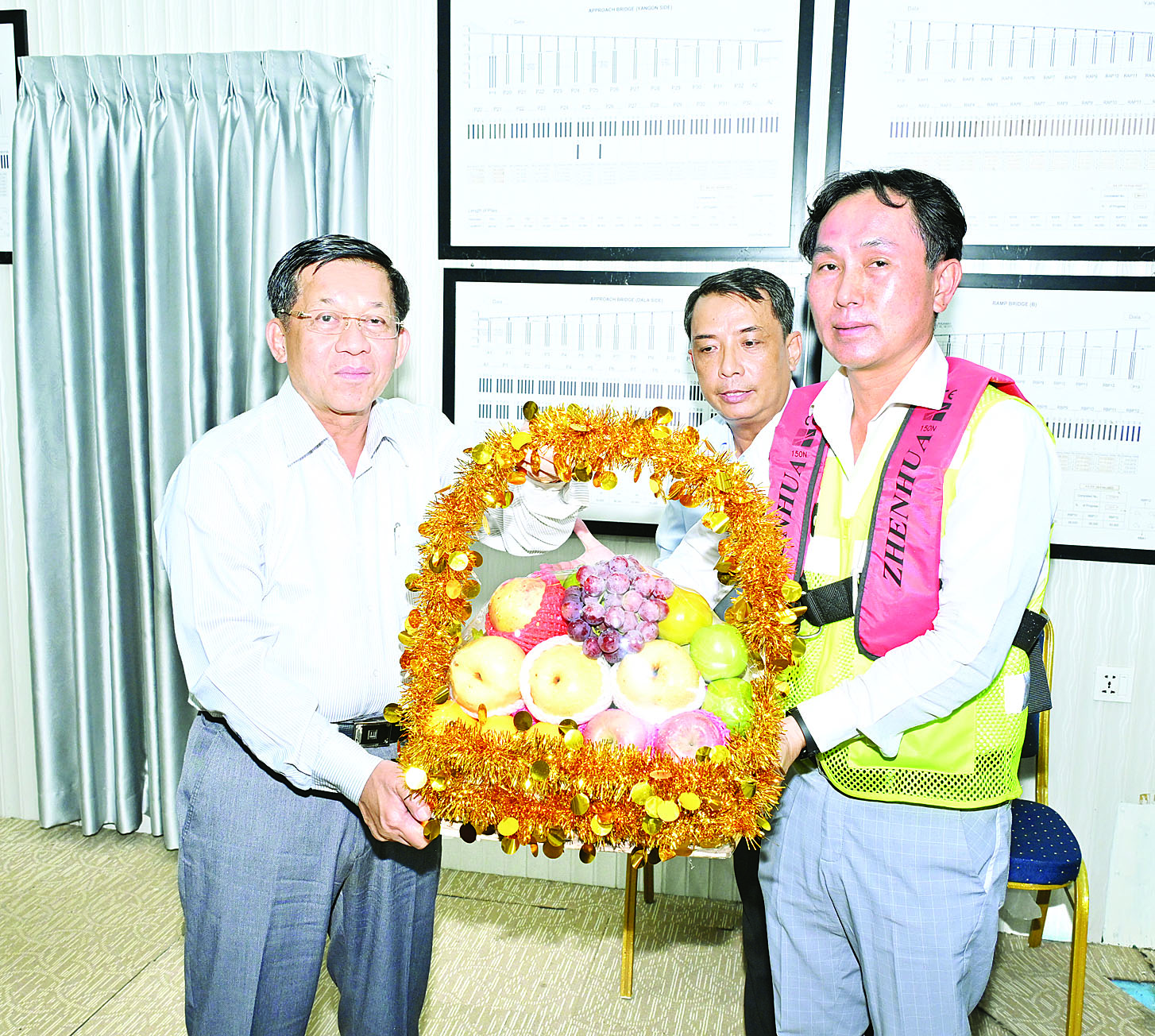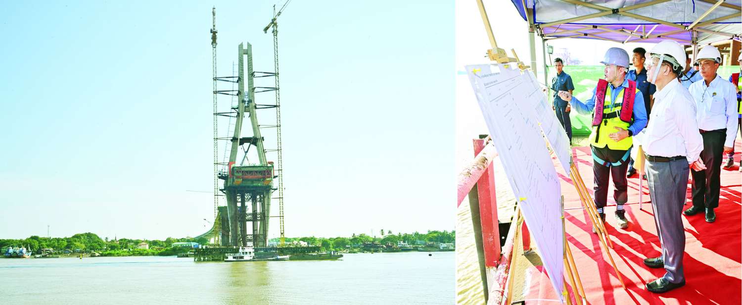 ယင်းနောက် နိုင်ငံတော်စီမံအုပ်ချုပ်ရေးကောင်စီဥက္ကဋ္ဌ နိုင်ငံတော်ဝန်ကြီးချုပ်နှင့် အဖွဲ့ဝင်များသည် တံတားတည်ဆောက်ရေးစီမံကိန်းလုပ်ငန်းဆောင်ရွက်နေမှု အခြေအနေများကို လိုက်လံကြည့်ရှုစစ်ဆေးပြီး တာဝန်ရှိသူများ၏ ရှင်းလင်းတင်ပြမှုများအပေါ် လိုအပ်သည်များ လမ်းညွှန်မှာကြားသည်။