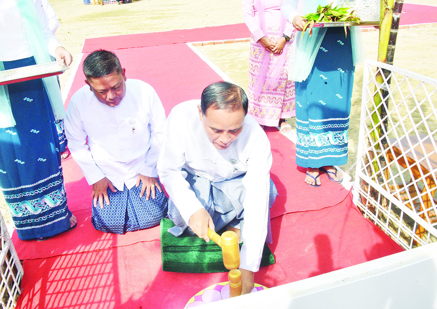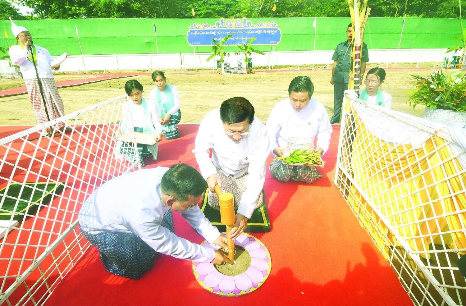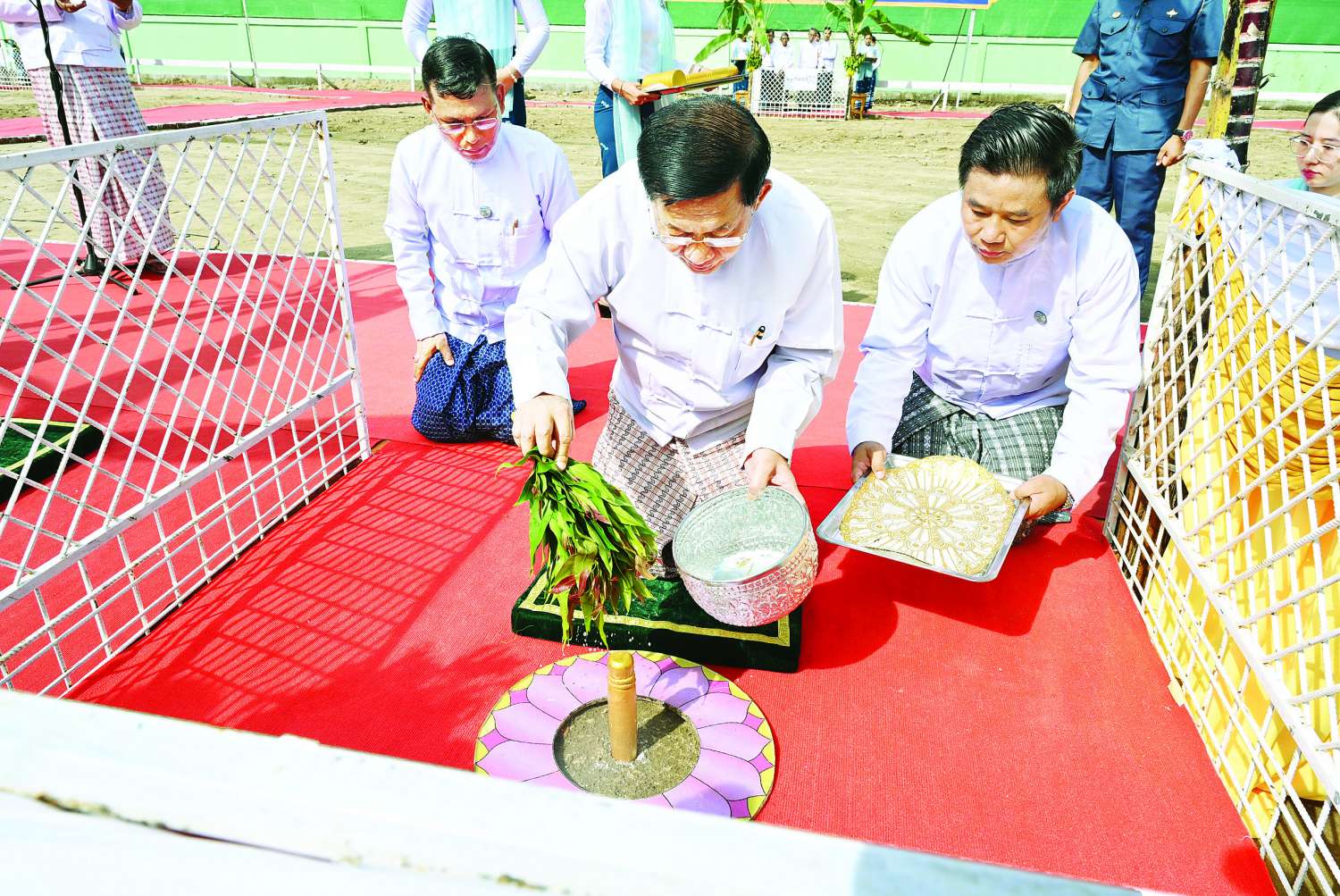နိုင်ငံတော်စီမံအုပ်ချုပ်ရေးကောင်စီဥက္ကဋ္ဌ နိုင်ငံတော်ဝန်ကြီးချုပ် ဗိုလ်ချုပ်မှူးကြီး မင်းအောင်လှိုင် စာဆိုဗိမာန်သုံးထပ်အဆောက်အဦတည်ဆောက်ခြင်း ရတနာပန္နက်တော်တင် မင်္ဂလာအခမ်းအနားသို့ တက်ရောက်ချီးမြှင့်