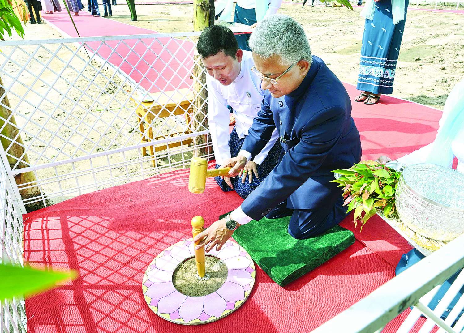 ဦးစွာ အခမ်းအနားမှူးက မင်္ဂလာအခါတော်စာတမ်းကို ဖတ်ကြားပြီး မင်္ဂလာအချိန်တွင် နိုင်ငံတော်စီမံအုပ်ချုပ်ရေးကောင်စီဥက္ကဋ္ဌ နိုင်ငံတော်ဝန်ကြီးချုပ်က စာဆိုဗိမာန်အဆောက်အဦ တည်ဆောက်မည့် ဗဟိုနေရာ၌ ရတနာပန္နက်တိုင်ကို စိုက်ထူပေးပြီး အမွှေးနံ့သာရည်များဖြင့် ပက်ဖျန်းပေးသည်။