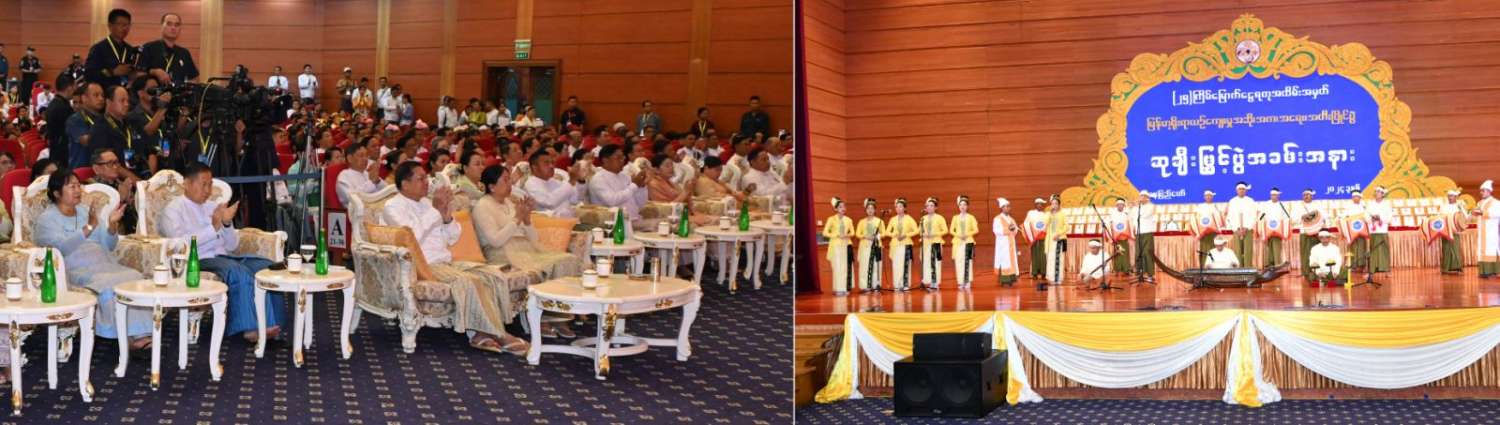 (၂၅)ကြိမ်မြောက် ငွေရတုအထိမ်းအမှတ် မြန်မာ့ရိုးရာယဉ်ကျေးမှု အဆို၊ အက၊ အရေး၊ အတီးပြိုင်ပွဲ ဆုချီးမြှင့်ပွဲအခမ်းအနားကို ယနေ့နံနက်ပိုင်းတွင် နေပြည်တော်ရှိ မြန်မာအပြည်ပြည်ဆိုင်ရာ ကွန်ဗင်းရှင်းဗဟိုဌာန-၂ ၊ ညီလာခံခန်းမ၌ကျင်းပရာ နိုင်ငံတော်စီမံအုပ်ချုပ်ရေးကောင်စီဥက္ကဋ္ဌ နိုင်ငံတော်ဝန်ကြီးချုပ် ဗိုလ်ချုပ်မှူးကြီးမင်းအောင်လှိုင် တက်ရောက်အမှာစကားပြောကြားသည်။