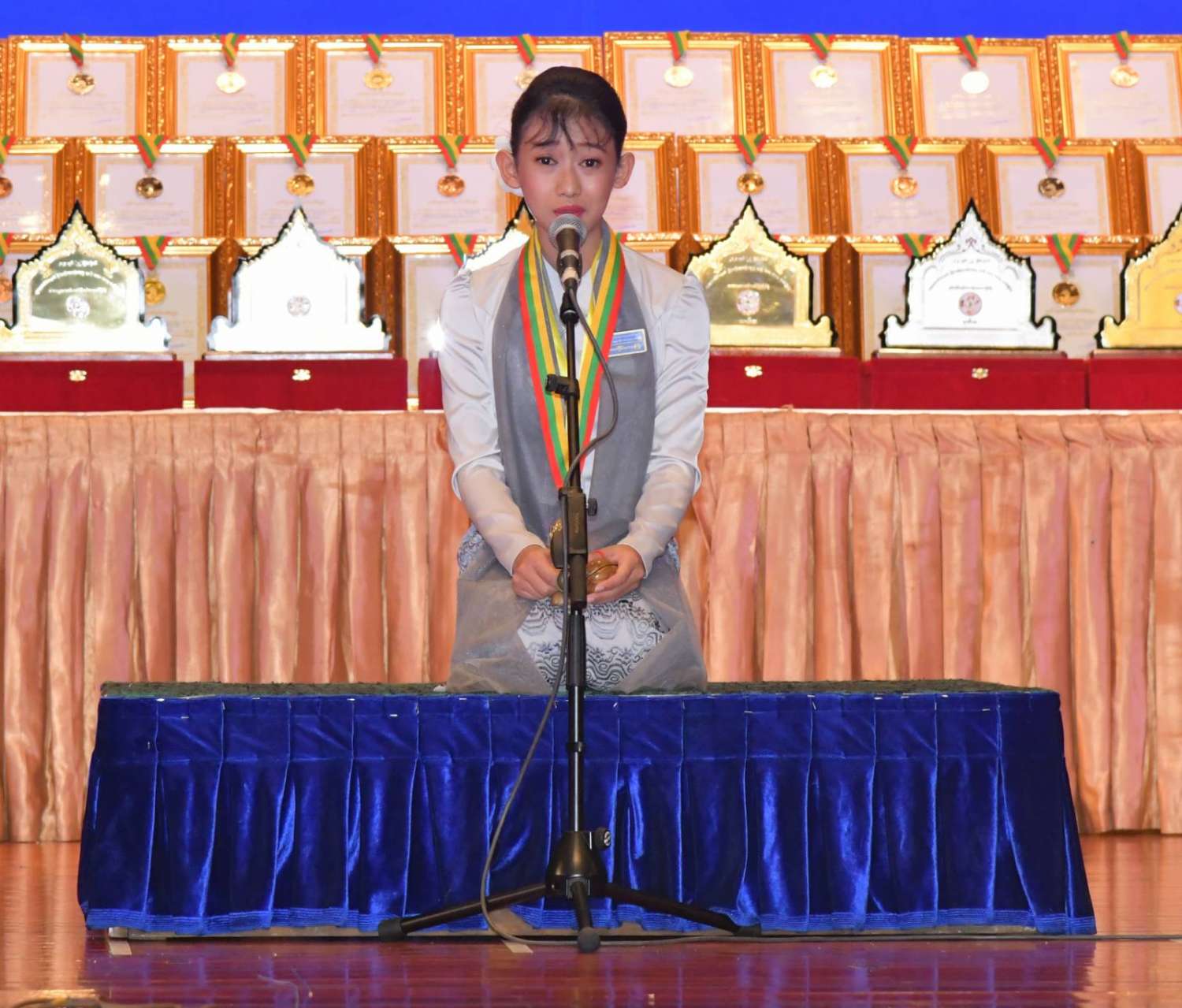ယင်းနောက်ကောင်စီဝင်များက ခေတ်ဟောင်း/ကာလပေါ် အဆိုပြိုင်ပွဲဝါသနာရှင် အဆင့်(ပထမတန်း)၊ ဝါသနာရှင်အဆင့် (ဒုတိယတန်း)၊ အဆင့်မြင့်ပညာအဆင့်၊ အခြေခံပညာရှင်အဆင့် (အသက် ၁၅ နှစ်မှ ၂၀ နှစ်အတွင်း)၊ အခြေခံပညာအဆင့် (အသက် ၁၀ နှစ် မှ ၁၅ နှစ် အတွင်း) (အမျိုးသား)ပြိုင်ပွဲများတွင် ဆုရရှိကြသူများကိုလည်းကောင်း၊ ကောင်စီဝင်များ၏ ဇနီးများက ခေတ်ဟောင်း/ကာလပေါ် အဆိုပြိုင်ပွဲဝါသနာရှင်အဆင့် (ပထမတန်း)၊ ဝါသနာရှင်အဆင့် (ဒုတိယတန်း)၊ အဆင့်မြင့်ပညာအဆင့်၊ အခြေခံပညာရှင်အဆင့်(အသက် ၁၅ နှစ်မှ ၂၀ နှစ်အတွင်း)၊ အခြေခံပညာအဆင့် (အသက် ၁၀ နှစ် မှ ၁၅ နှစ်အတွင်း) (အမျိုးသမီး)ပြိုင်ပွဲများတွင် ဆုရရှိကြသူများကိုလည်းကောင်း ဂုဏ်ပြုဆုတံဆိပ်နှင့် ဂုဏ်ပြုမှတ်တမ်းလွှာများ ပေးအပ်ချီးမြှင့်ကြသည်။
