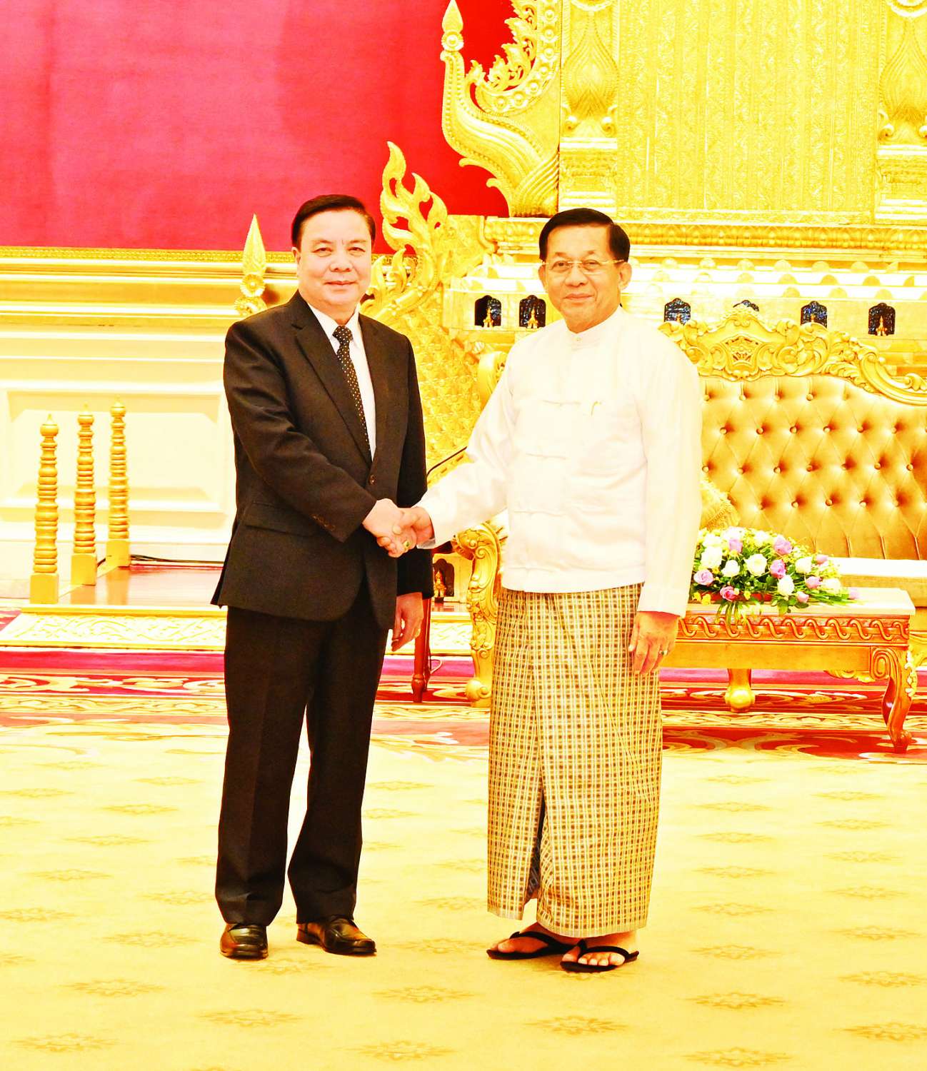နိုင်ငံတော်စီမံအုပ်ချုပ်ရေးကောင်စီဥက္ကဋ္ဌ နိုင်ငံတော်ဝန်ကြီးချုပ် ဗိုလ်ချုပ်မှူးကြီး မင်းအောင်လှိုင်သည် တာဝန်ပြီးဆုံး၍ ပြန်လည်ထွက်ခွာမည့် မြန်မာနိုင်ငံဆိုင်ရာ လာအိုနိုင်ငံ သံအမတ်ကြီး H. E. Mr. Heuangseng KHAMDALAVONG အား ယနေ့နံနက်ပိုင်းတွင် နေပြည်တော်ရှိ နိုင်ငံတော်စီမံအုပ်ချုပ်ရေးကောင်စီဥက္ကဋ္ဌရုံး၊ သံတမန်ဆောင်ဧည့်ခန်းမ၌ လက်ခံတွေ့ဆုံသည်။