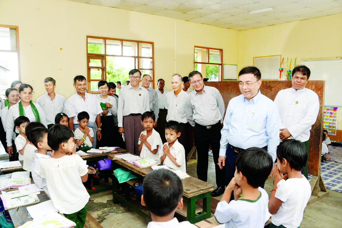 ထို့နောက် ဆရာ ဆရာမများကို ရင်းရင်းနှီးနှီးတွေ့ဆုံနှုတ်ဆက်ကာ သင်ကြားရေး၊ စီမံခန့်ခွဲရေးဆိုင်ရာများ၊ တည်ဆောက်ရေး၊ ကျောင်းဆောင်ပြင်ဆင်ထိန်းသိမ်းရေးဆိုင်ရာ လုပ်ငန်းများနှင့် ကျောင်းဖွံ့ဖြိုးတိုးတက်ရေးဆိုင်ရာများကို ဆွေးနွေးပြောကြား၍ လိုအပ်သည်များ ဖြည့်ဆည်းဆောင်ရွက်ပေးခဲ့ကြောင်း သိရသည်။