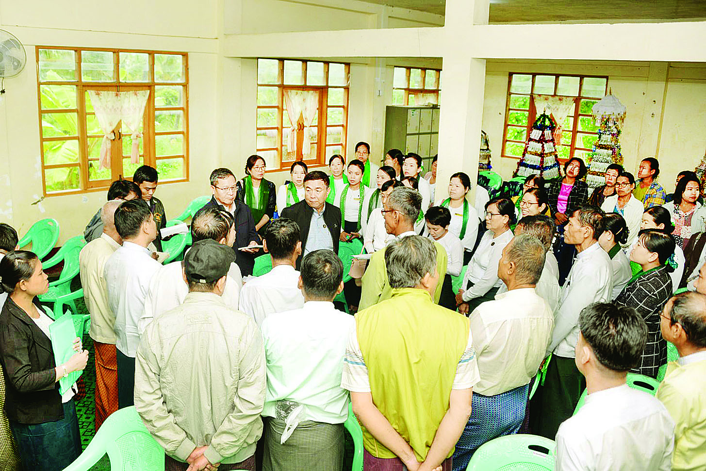 ထို့နောက် ဆရာဆရာမများနှင့်တွေ့ဆုံ၍ တိုင်းပြည်အနာဂတ်အတွက် ပညာရေးသည် အဓိကလိုအပ်ချက်ဖြစ်ပါကြောင်း၊ ဆရာ ဆရာမများအနေဖြင့် မိမိတို့ကျောင်းအလိုက် တက္ကသိုလ်ဝင်စာမေးပွဲဖြေဆိုမည့် ကျောင်းသား ကျောင်းသူများ အောင်ချက်မြင့်မားစေရေးအတွက် ဝိုင်းဝန်းလက်တွဲ၍ ကြိုးပမ်းဆောင်ရွက်ကြရမည်ဖြစ်ပါကြောင်း၊ အနာဂတ်လူငယ်များ ပညာရည်မြင့်မားရေး၊ အမျိုးသားစရိုက်လက္ခဏာများထိန်းသိမ်းရေးနှင့် တိုးတက်ပြောင်းလဲနေသည့် ခေတ်နှင့်အညီ ရင်ပေါင်တန်းနိုင်ရေးအတွက် ဗလငါးတန်နှင့် ပြည့်စုံသောလူငယ်များဖြစ်စေရန် ပြုစုပျိုးထောင် လေ့ကျင့်ပေးကြရမည်ဖြစ်ကြောင်းမှာကြားကာ ဆရာ ဆရာမများ၏ တင်ပြချက်အပေါ် ပေါင်းစပ်ညှိနှိုင်း ဖြည့်ဆည်းဆောင်ရွက်ပေးခဲ့ကြောင်း သိရသည်။