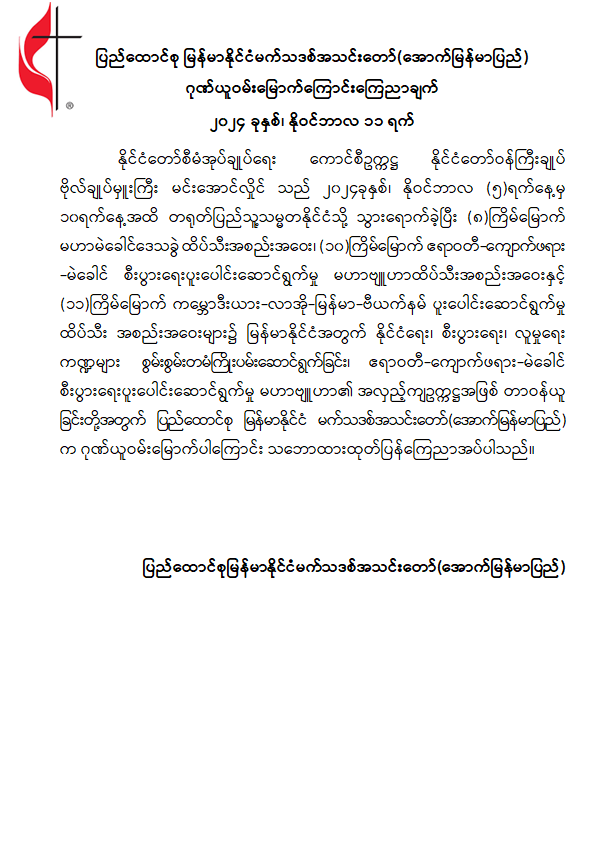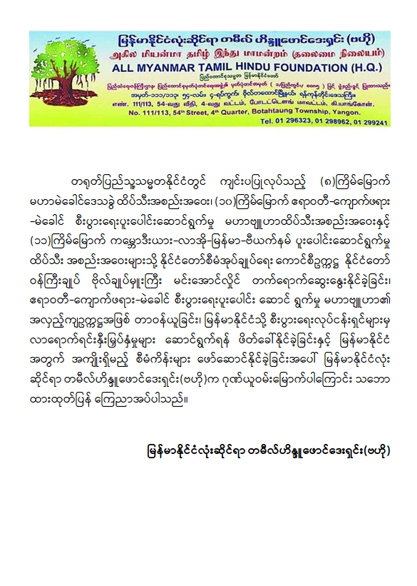နိုင်ငံတော်စီမံအုပ်ချုပ်ရေးကောင်စီဥက္ကဋ္ဌ နိုင်ငံတော်ဝန်ကြီးချုပ် ဗိုလ်ချုပ်မှူးကြီး မင်းအောင်လှိုင်၏ တရုတ်နိုင်ငံခရီးစဉ်တွင် နိုင်ငံတော်အတွက် ကဏ္ဍစုံဖွံ့ဖြိုးတိုးတက်အောင် ကြိုးပမ်းဆောင်ရွက်ခဲ့မှုအပေါ် အဖွဲ့အစည်းများမှ ဂုဏ်ယူဝမ်းမြောက်ကြောင်း ထုတ်ပြန်ကြေညာ