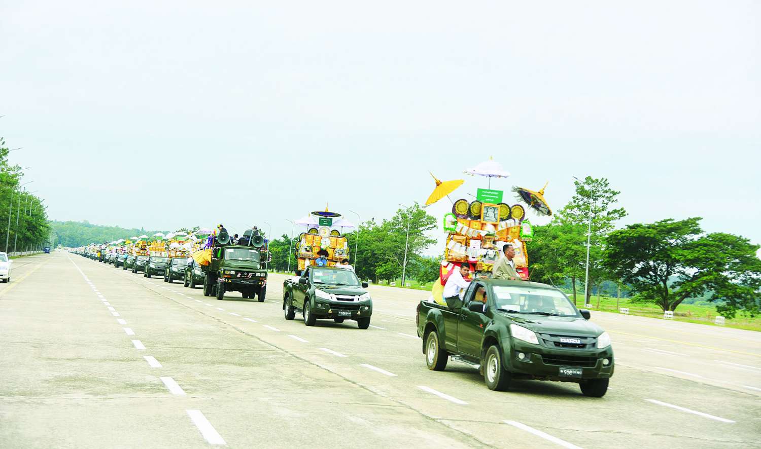 ကာကွယ်ရေးဦးစီးချုပ်ရုံး (ကြည်း၊ ရေ၊ လေ) မိသားစုများ၏ ၂၀၂၄ ခုနှစ် မိသားစုမဟာဘုံကထိန်အလှူတော်အဖြစ် လှူဒါန်းထားသည့် ပဒေသာပင်များအား နိုဝင်ဘာ ၁၀ ရက်တွင် ကာကွယ်ရေးဦးစီးချုပ်ရုံး(ကြည်း)ဝန်းအတွင်းရှိ အနော်ရထာခန်းမမှ ဥပ္ပါတသန္တိစေတီတော်မြတ်ကြီးသို့ မော်တော်ယာဉ်များဖြင့် လှည့်လည်ခဲ့သည်။