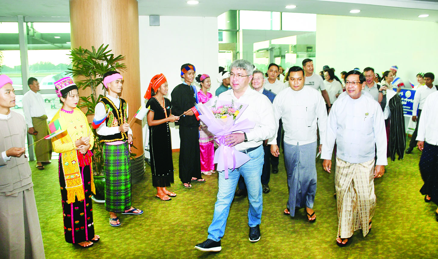 ရုရှားဖက်ဒရေးရှင်းနိုင်ငံ ဘူရားတီးရားပြည်နယ်အကြီးအကဲ H.E.Mr. Alexey Sambuevich Tsydenov ဦးဆောင်သော ကိုယ်စားလှယ်အဖွဲ့သည် ယနေ့ညနေပိုင်းတွင် ရန်ကုန်မြို့သို့ ရောက်ရှိကြရာ ရန်ကုန်တိုင်းဒေသကြီးဝန်ကြီးချုပ် ဦးစိုးသိန်းနှင့် တိုင်းဒေသကြီးအစိုးရအဖွဲ့ဝန်ကြီးများ၊ မြန်မာနိုင်ငံဆိုင်ရာ ရုရှားသံအမတ်ကြီး H.E.Mr. Iskander Azizov နှင့် တာဝန်ရှိသူများ၊ နယ်စပ်ရေးရာဝန်ကြီးဌာန၊ ပြည်ထောင်စုတိုင်းရင်းသားလူငယ်များ စွမ်းရည်ဖွံ့ဖြိုးရေးဒီဂရီကောလိပ်မှ ကျောင်းသား ကျောင်းသူများက ရန်ကုန်အပြည်ပြည်ဆိုင်ရာ လေဆိပ်၌ ကြိုဆိုနှုတ်ဆက်ကြသည်။