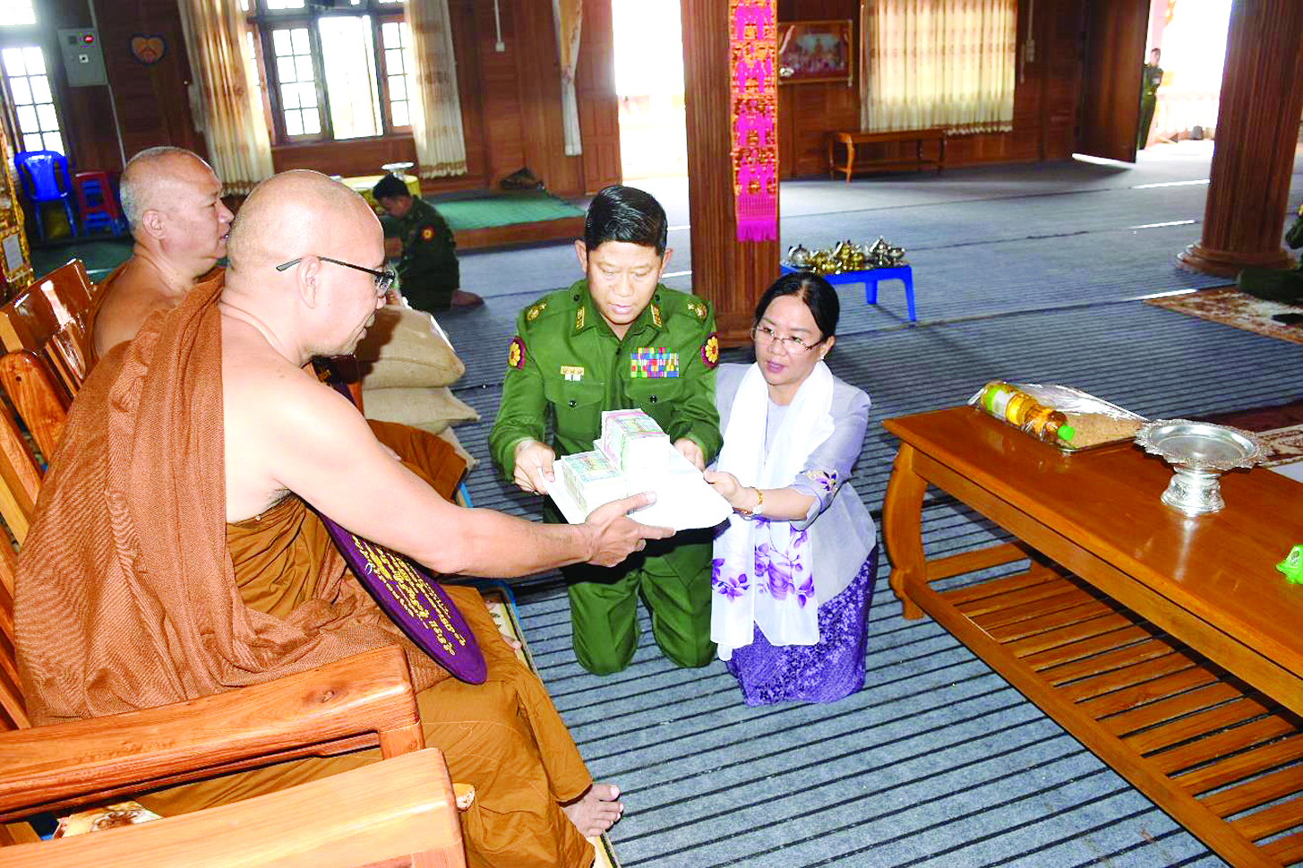ရှမ်းပြည်နယ် (တောင်ပိုင်း) ခိုလမ်မြို့ရှိ သီရိမင်္ဂလာကျောင်းတိုက်၌ တည်ဆောက်မည့် ဗုဒ္ဓကောလိပ်ငါးထပ်ကျောင်းဆောင်သစ် အလှူငွေလှူဒါန်းခြင်းနှင့် ခိုလမ်မြို့အတွင်းရှိ ဘုန်းတော်ကြီးကျောင်းများသို့ ဆန်၊ ဆီ၊ ကုလားပဲ၊ ကြက်ဥများ လှူဒါန်းပွဲကို ယနေ့နံနက်ပိုင်းတွင် ခိုလမ်မြို့ရှိ သီရိမင်္ဂလာကျောင်းတိုက်၌ ပြုလုပ်ရာ ခိုလမ်မြို့ သီရိမင်္ဂလာကျောင်းတိုက် ဆရာတော်ဘဒ္ဒန္တပညာသီရိအမှူးပြုသော သံဃာတော်များ ကြွရောက်တော်မူကြပြီး အရှေ့အလယ်ပိုင်းတိုင်းစစ်ဌာန ချုပ်တိုင်းမှူး ဗိုလ်ချုပ် မျိုးမင်းထွန်းနှင့် အဖွဲ့ဝင်များ တက်ရောက်ကြသည်။