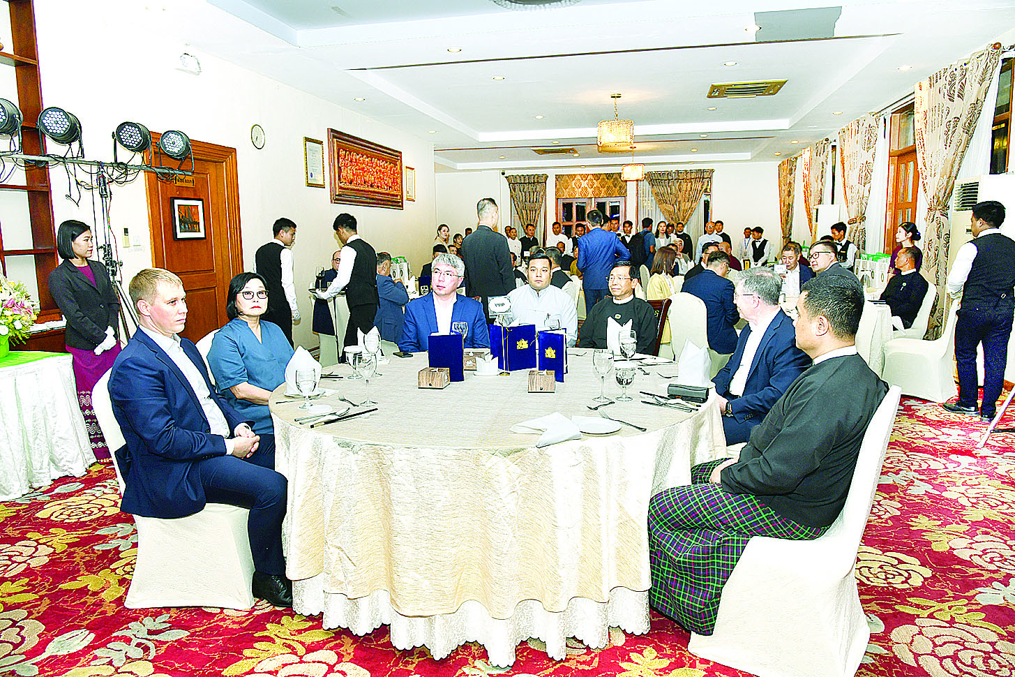 တွေ့ဆုံပွဲသို့ ဒုတိယဝန်ကြီးချုပ်များနှင့်အတူ ရင်းနှီးမြှုပ်နှံမှုနှင့်နိုင်ငံခြားစီးပွားဆက်သွယ်ရေးဝန်ကြီးဌာန၊ သာသနာရေးနှင့်ယဉ်ကျေးမှုဝန်ကြီးဌာန၊ စိုက်ပျိုးရေး၊ မွေးမြူရေးနှင့် ဆည်မြောင်းဝန်ကြီးဌာန၊ စက်မှုဝန်ကြီးဌာန၊ စီးပွားရေးနှင့်ကူးသန်းရောင်းဝယ်ရေးဝန်ကြီးဌာန၊ ကျန်းမာရေးဝန်ကြီးဌာန၊ ဟိုတယ်နှင့်ခရီးသွားလာရေးဝန်ကြီးဌာနများမှ ပြည်ထောင်စုဝန်ကြီးများ၊ ဌာနများမှ အရာရှိကြီးများ၊ မြန်မာနိုင်ငံဆိုင်ရာ ရုရှားဖက်ဒရေးရှင်းနိုင်ငံသံရုံးမှ သံအမတ်ကြီးနှင့် ကိုယ်စားလှယ်အဖွဲ့ဝင်များ တက်ရောက်ကြသည်။