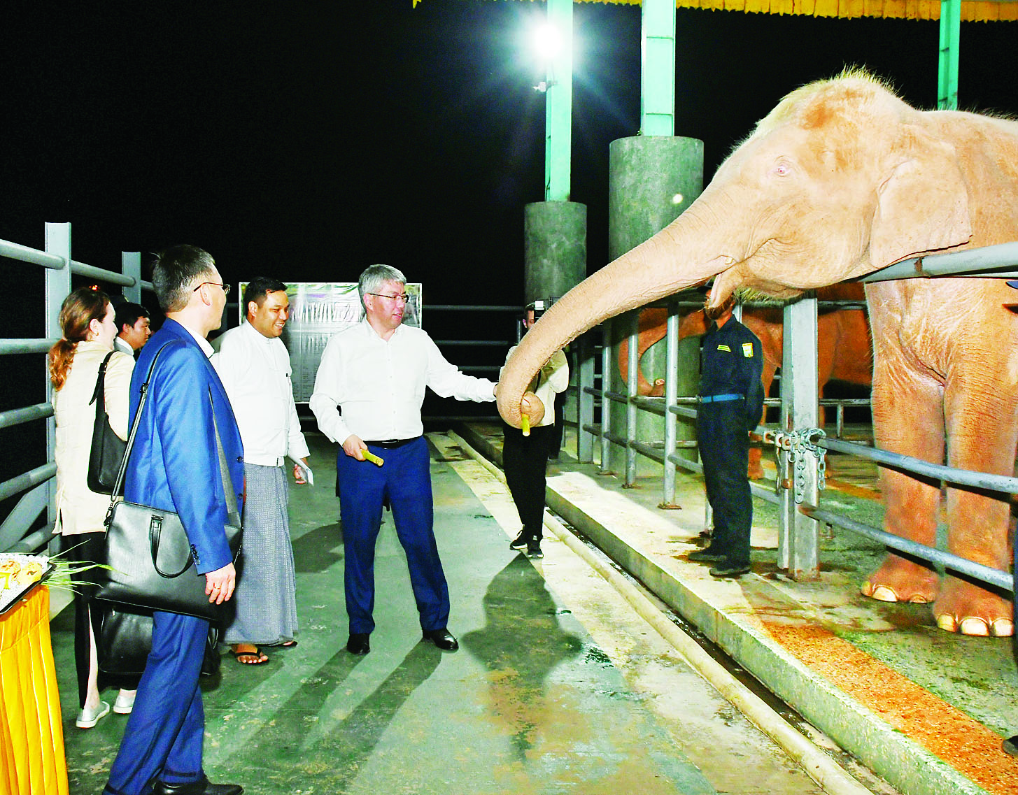 ထို့နောက် ဘူရားတီးရား ပြည်နယ်အကြီးအကဲနှင့် အဖွဲ့သည် နေပြည်တော်ရှိ ဥပ္ပါတသန္တိစေတီတော်မြတ်ကြီးအား သွားရောက်ဖူးမြော်ကြည်ညိုကြပြီး လိုဏ်အတွင်းရှိ ဗုဒ္ဓရုပ်ပွားတော်မြတ်အား ပန်း၊ ရေချမ်းများ ကပ်လှူပူဇော်၍ အလှူငွေများ လှူဒါန်းကြကာ ရတနာဆင်ဖြူတော်အဆောင်ရှိ ဆင်ဖြူတော်များကို အာဟာရဖြည့်စွက်စာများ ကျွေးမွေးခဲ့ကြသည်။