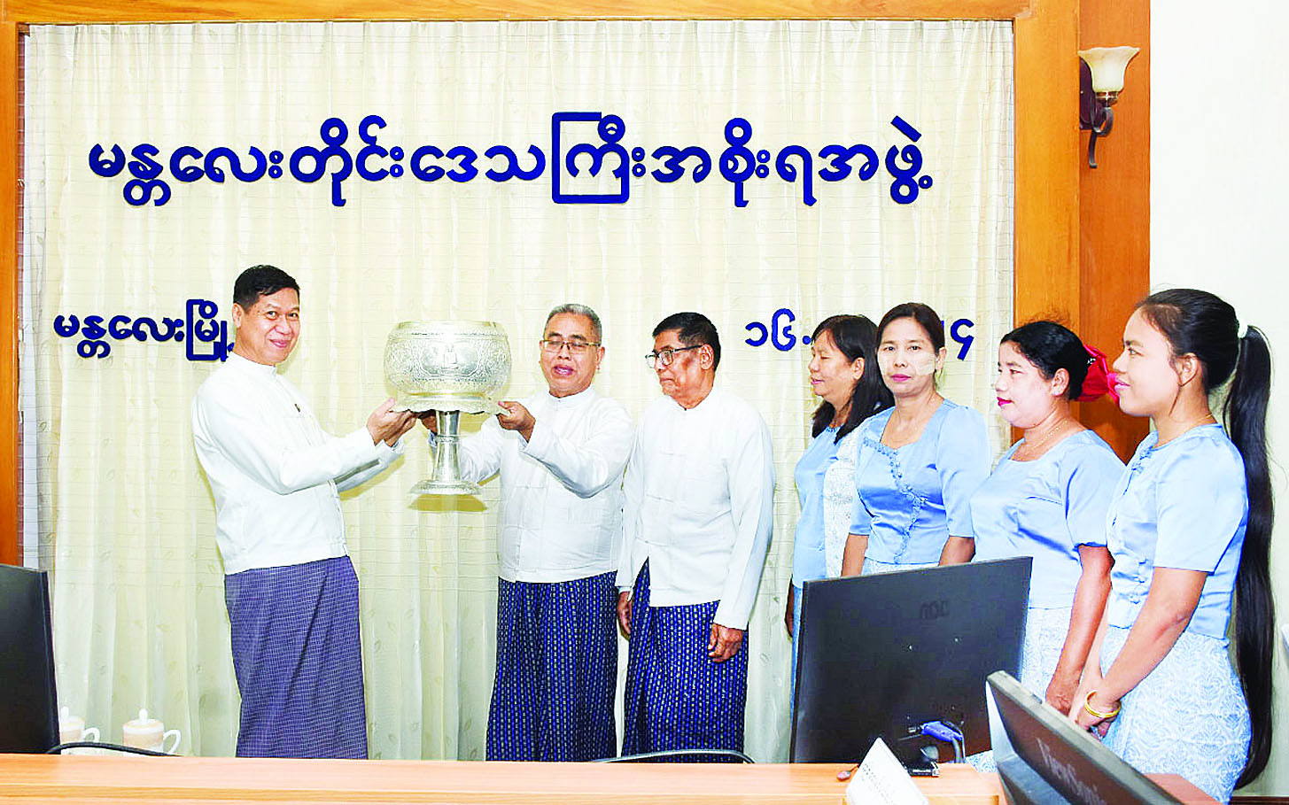 ပြည်ထောင်စုနယ်မြေ နေပြည်တော် ဒက္ခိဏသီရိမြို့နယ် ဗုဒ္ဓဥယျာဉ်တော် ဝတ္ထုကံတော်အတွင်းရှိ မာရဝိဇယဗုဒ္ဓရုပ်ပွားတော်မြတ်ကြီးအား မသိုးရွှေကြာသင်္ကန်းတော် ရက်လုပ်ပူဇော်ပွဲပြိုင်ပွဲတွင် ပထမဆုရရှိခဲ့သည့် မန္တလေးတိုင်းဒေသကြီးကိုယ်စားပြု ဝင်ရောက်ယှဉ်ပြိုင်ခဲ့ရာ ပထမဆုရရှိခဲ့သည့်အမရ ရွှေပြည်ရက်ကန်းအဖွဲ့အား မန္တလေးတိုင်းဒေသကြီး အစိုးရအဖွဲ့က ဂုဏ်ပြုသည့်အခမ်းအနားကို ယနေ့နံနက်ပိုင်းက တိုင်းဒေသကြီးအစိုးရအဖွဲ့ရုံးအစည်းအဝေးခန်းမ၌ကျင်းပရာ တိုင်းဒေသကြီးဝန်ကြီးချုပ်ဦးမျိုးအောင်နှင့် တိုင်းဒေသကြီးဝန်ကြီးများ၊ တာဝန်ရှိသူများ တက်ရောက်သည်။