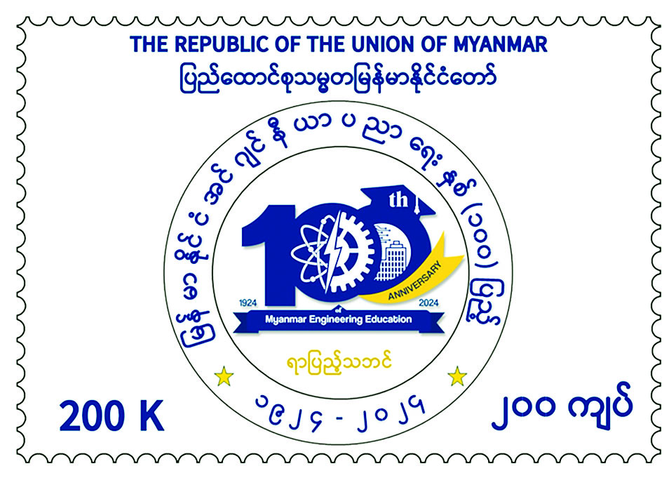 ပို့ဆောင်ရေးနှင့်ဆက်သွယ်ရေးဝန်ကြီးဌာန မြန်မာ့စာတိုက်လုပ်ငန်းမှ သိပ္ပံနှင့်နည်းပညာဝန်ကြီးဌာန မြန်မာနိုင်ငံအင်ဂျင်နီယာပညာရေးနှစ် (၁၀၀) ပြည့်အထိမ်းအမှတ် အတည်ပြုရွေးချယ်ထားသည့် အမှတ်တံဆိပ် Logo အား အထူးထုတ်စာပို့တံဆိပ်ခေါင်းအဖြစ် (၂၀၀ကျပ်တန်) စာပို့တံဆိပ်ခေါင်းသစ်တစ်မျိုးကို ၂၀၂၄ ခုနှစ် နိုဝင်ဘာ ၂၁ ရက် မြန်မာသက္ကရာဇ် ၁၃၈၆ ခုနှစ် တန်ဆောင်မုန်းလပြည့်ကျော် ၆ ရက် (ကြာသပတေးနေ့) နံနက် ၉ နာရီခွဲမှ စတင်၍ နေပြည်တော်ဗဟိုစာတိုက်ကြီး၊ ရန်ကုန်စာတိုက်ကြီး၊ မန္တလေးစာတိုက်ကြီးတို့နှင့် တိုင်းဒေသကြီး/ ပြည်နယ်များရှိ စာတိုက်ကြီးများတွင် တစ်ပြိုင်တည်းရောင်းချပေးသွားမည်ဖြစ်သည်။