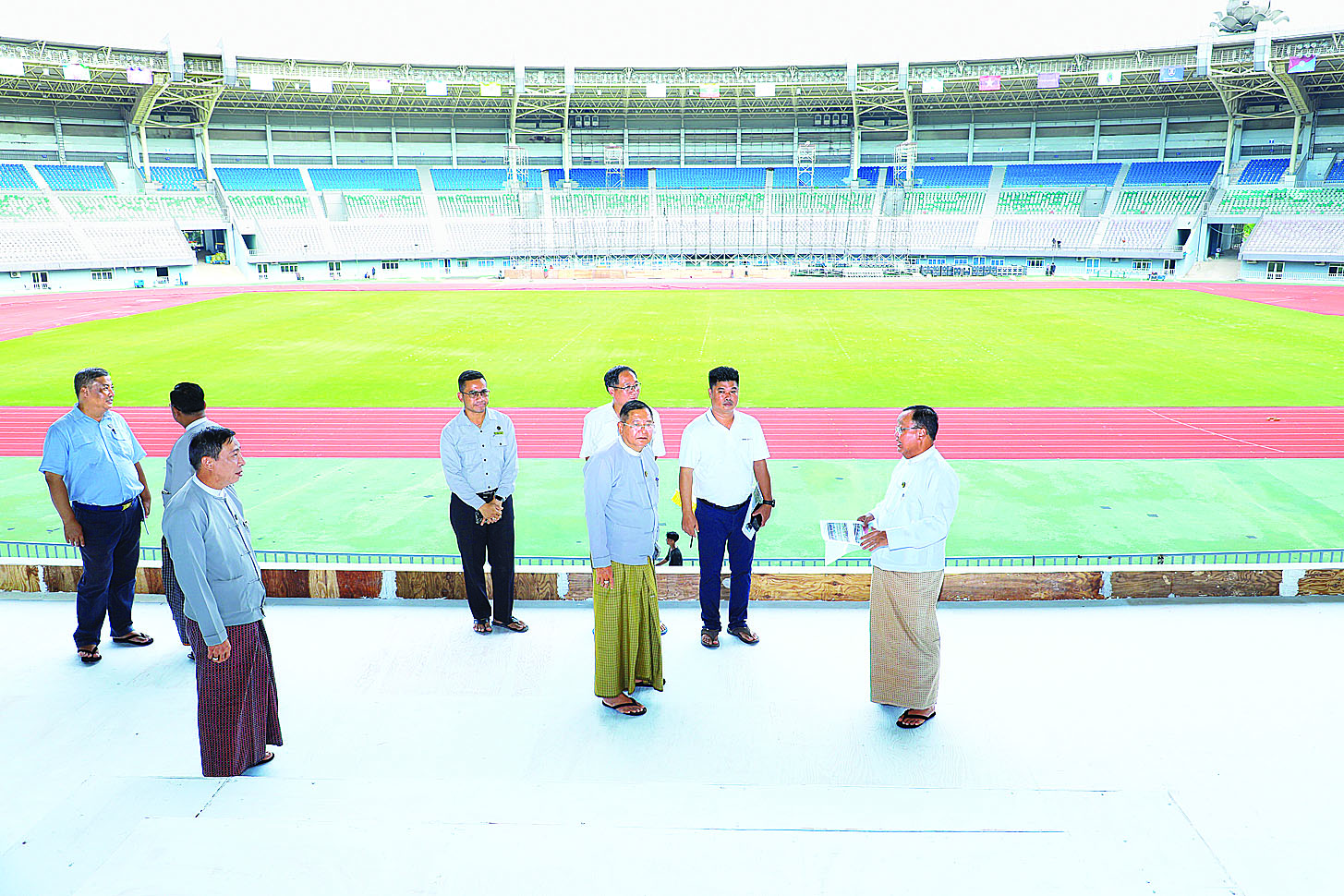 ၂၀၂၄ခုနှစ်၊ ပဉ္စမအကြိမ် အမျိုးသားအားကစားပွဲတော် အခမ်းအနားပြင်ဆင်ရေး ဆပ်ကော်မတီဥက္ကဋ္ဌ ဆောက်လုပ်ရေးဝန်ကြီးဌာန ဒုတိယဝန်ကြီး ဦးဝင်းဖေသည် ယနေ့မွန်းလွဲပိုင်းတွင် အမျိုးသားအားကစားပွဲတော် ဖွင့်ပွဲ/ ပိတ်ပွဲ အခမ်းအနား ကျင်းပပြုလုပ်မည့် နေရာများကို ကြိုတင်ပြင်ဆင်ဆောင်ရွက်နေမှုများနှင့် ဒိုင်/ဂျူရီ များတည်းခိုနေထိုင်မည့် အိပ်ဆောင် ပြုပြင်မွမ်းမံဆောင်ရွက်နေမှုအခြေအနေများကို ကြည့်ရှုစစ်ဆေးသည်။