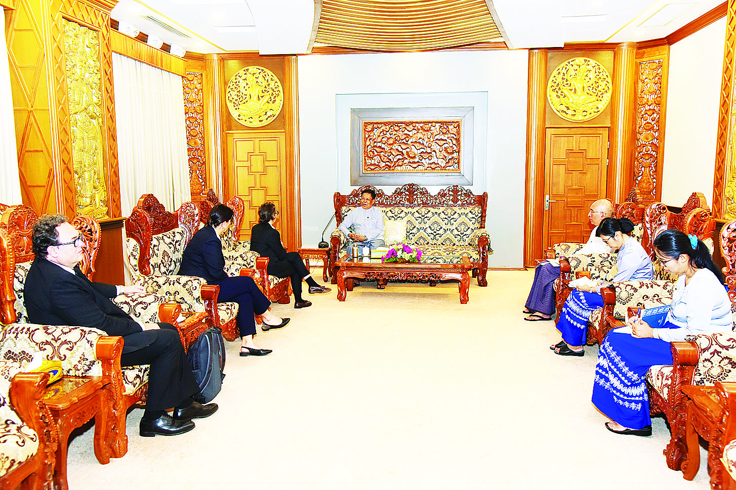 ဒုတိယဝန်ကြီးချုပ်နှင့် နိုင်ငံခြားရေးဝန်ကြီးဌာန ပြည်ထောင်စုဝန်ကြီး ဦးသန်းဆွေသည် ဆွစ်ဇာလန်နိုင်ငံ ဂျီနီဗာမြို့အခြေစိုက် ကမ္ဘာလုံးဆိုင်ရာရန်ပုံငွေအဖွဲ့ (Global Fund to Fight AIDS, Tuberculosis and Malaria - Global Fund) မှ Senior Fund Portfolio Manager- Ms. Maria Izaskun Gaviria Ayucar ဦးဆောင်သော ကိုယ်စားလှယ်အဖွဲ့ကို ယနေ့နံနက်၁၁ နာရီတွင် နေပြည်တော်ရှိ နိုင်ငံခြားရေးဝန်ကြီးဌာန၌ လက်ခံတွေ့ဆုံသည်။