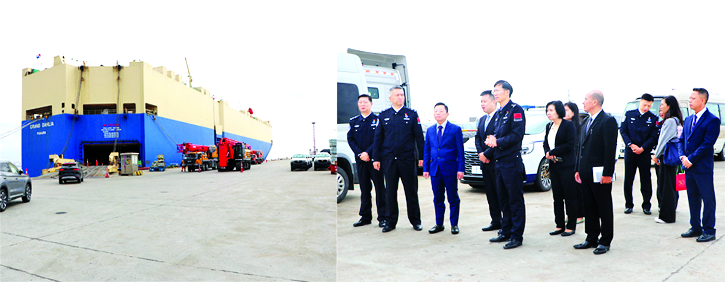 နိုဝင်ဘာ ၁၉ ရက်နံနက်ပိုင်းတွင် ပြည်ထောင်စုဝန်ကြီးနှင့်အဖွဲ့သည် ရှန်ဟိုင်းမြို့ ရှန်ဟိုင်းအပြည်ပြည်ဆိုင်ရာဆိပ်ကမ်း (Shanghai International Terminal) သို့ သွားရောက်လေ့လာကြရာ SIPG HAITONG LOGISTICS ကုမ္ပဏီရုံးခန်း၌ တာဝန်ရှိသူတစ်ဦးက ရှန်ဟိုင်းဆိပ်ကမ်း၌ နိုင်ငံတကာသို့ တင်ပို့မည့်မော်တော်ယာဉ်များ ထိန်းသိမ်းထားရှိမှု၊ မကြာသေးမီကာလက ဆောင်ရွက်ခဲ့သည့် ပြည်ပသို့တင်ပို့မည့် မော်တော်ယာဉ်များအား ဂိုဒေါင်အတွင်း အလွှာလိုက် ထိန်းသိမ်းနိုင်ရေးဆောင်ရွက်နေမှုနှင့် ဆက်လက်ဆောင်ရွက်မည့် လုပ်ငန်းအစီအစဉ်များ၊ လက်ရှိအခြေအနေတွင် လုပ်ငန်းခွင်ဝင်းအတွင်း ယာဉ်များ စနစ်တကျစီရီထားရှိမှုနှင့် လုပ်ငန်းစဉ်အဆင့်အလိုက် ဆောင်ရွက်နေမှုများကို ရှင်းလင်းတင်ပြသည်။