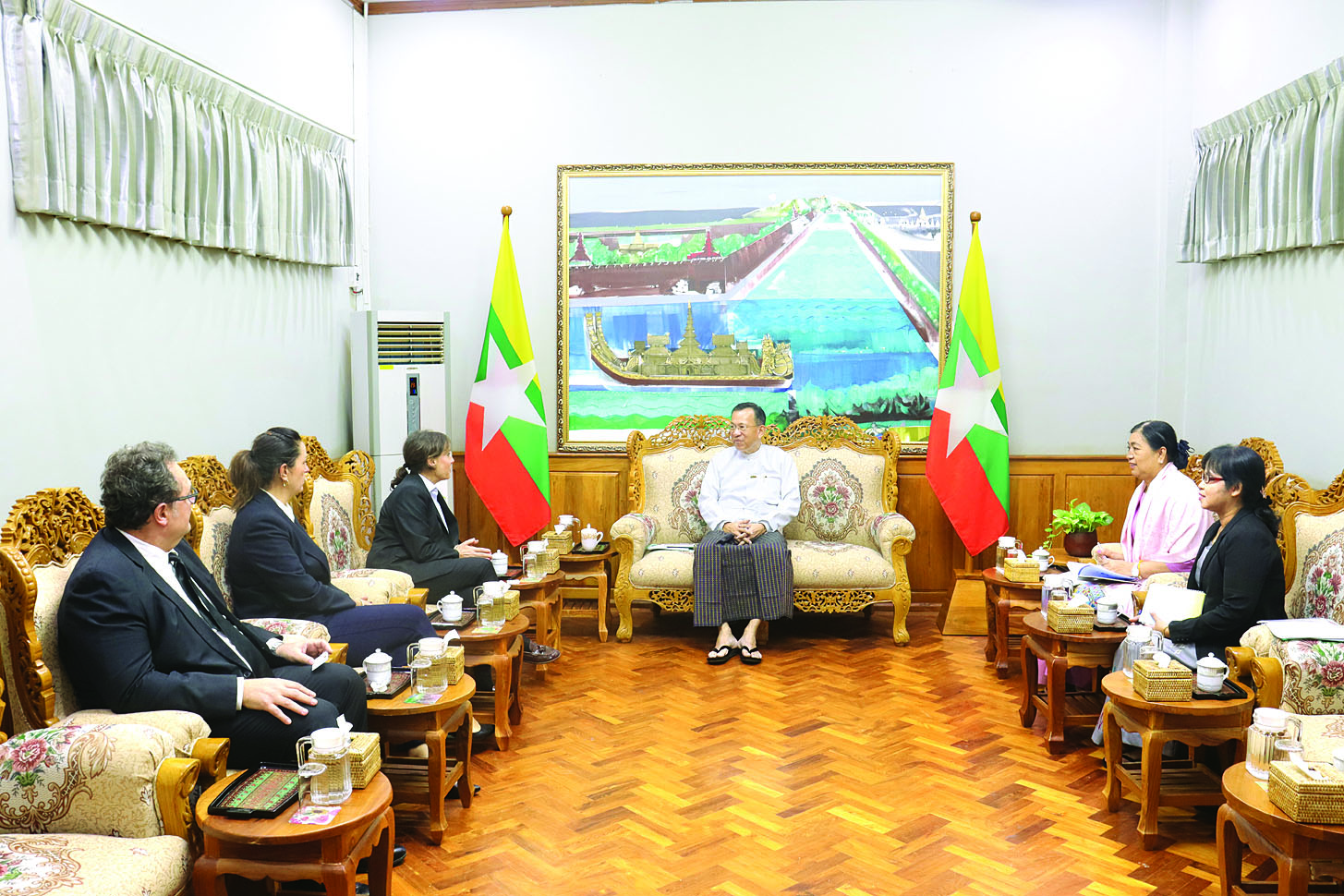 ရင်းနှီးမြှုပ်နှံမှုနှင့် နိုင်ငံခြားစီးပွားဆက်သွယ်ရေးဝန်ကြီးဌာန ပြည်ထောင်စုဝန်ကြီး ဒေါက်တာကံဇော်သည် ဆွစ်ဇာလန်နိုင်ငံ ဂျီနီဗာမြို့အခြေစိုက် ကမ္ဘာလုံး ဆိုင်ရာရန်ပုံငွေအဖွဲ့မှ Senior Fund Portfolio Manager - Ms. Maria Izaskun Gaviria Ayucar နှင့် အဖွဲ့ကို ယနေ့မွန်းလွဲပိုင်းတွင် နေပြည်တော်ရှိ ရင်းနှီးမြှုပ်နှံမှုနှင့် နိုင်ငံခြားစီးပွားဆက်သွယ်ရေးဝန်ကြီးဌာန ရုံးအမှတ် (၁) ၌ လက်ခံတွေ့ဆုံသည်။