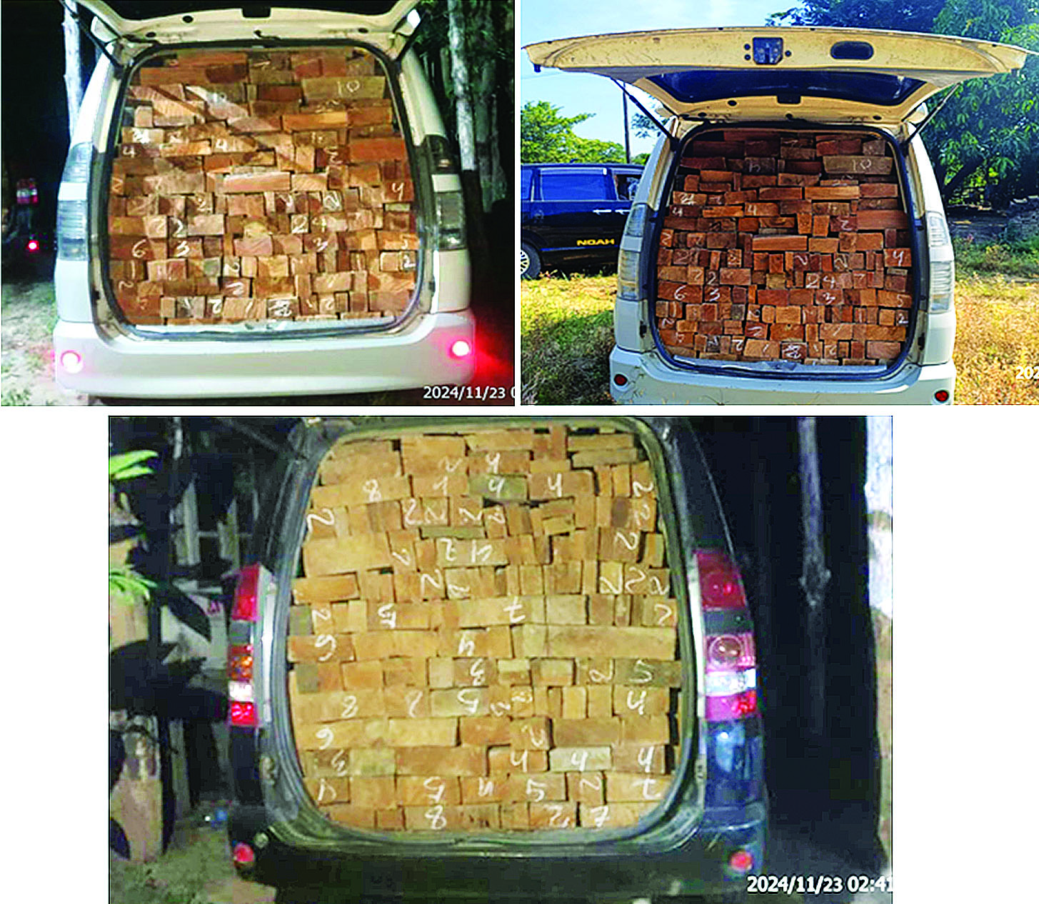 ထို့အတူ ပဲခူးတိုင်းဒေသကြီးတရားမဝင်ကုန်သွယ်မှုတိုက်ဖျက်ရေးအထူးအဖွဲ့၏ စီမံခန့်ခွဲမှုဖြင့် တာဝန်ကျပူးပေါင်းအဖွဲ့များက စစ်ဆေးမှုများ ဆောင်ရွက်ခဲ့ရာ ဘုရားကြီးမြို့ ရွှေသံလွင်တိုးဂိတ်အနီး၌ ဘားအံမြို့မှ ရန်ကုန်မြို့သို့ မောင်းနှင်လာသည့် မော်တော်ယာဉ်တစ်စီးပေါ်မှ တရားဝင်စာရွက်စာတမ်း အထောက်အထား တင်ပြနိုင်ခြင်းမရှိသည့် စားသောက်ကုန်ပစ္စည်းသုံးမျိုး (ခန့်မှန်းတန်ဖိုးငွေကျပ် ၃၅၀၀၀၀၀) နှင့် အဆိုပါပစ္စည်းများ တင်ဆောင်လာသည့် Yutong Bus တစ်စီး (ခန့်မှန်းတန်ဖိုးငွေကျပ် ၄၀၀၀၀၀၀၀) ကို အကောက်ခွန်လုပ်ထုံးလုပ်နည်းများအရလည်းကောင်း၊ တောင်ငူခရိုင်၊ ညောင်လေးပင်ခရိုင်၊ ပြည်ခရိုင်နှင့် သာယာဝတီခရိုင်တို့အတွင်း၌ တရားမဝင် ကျွန်းသစ် (၄ ဒသမ ၉၁၈) တန်၊ သစ်မာ (၀ ဒသမ ၇၀၃)တန်၊ အခြားသစ် (၀ ဒသမ ၃၁၇) တန် (ခန့်မှန်းတန်ဖိုးငွေကျပ် ၄၁၉၀၁၈၀) ကို သစ်တောဥပဒေအရလည်းကောင်း စုစုပေါင်းခန့်မှန်းတန်ဖိုးငွေကျပ် ၄၇၆၉၀၁၈၀ ကို ဖမ်းဆီးအရေးယူဆောင်ရွက်လျက်ရှိသည်။