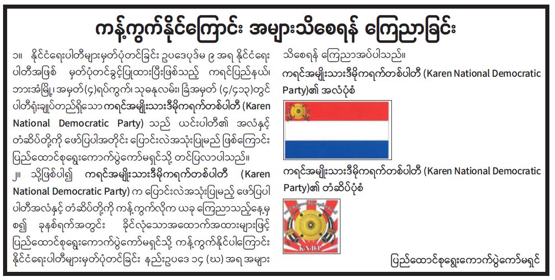 ကန့်ကွက်နိုင်ကြောင်း အများသိစေရန် ကြေညာခြင်း
