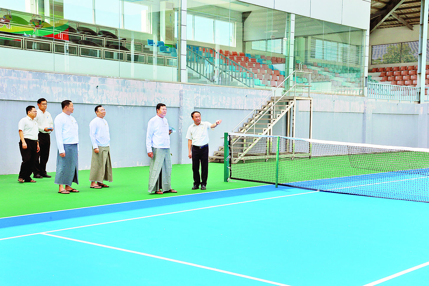 ဆက်လက်၍ အလေးမအားကစားရုံ၊ လက်ဝှေ့အားကစား ရုံ၊ ဘိလိယက်နှင့် စနူကာအားကစားရုံ၊ တင်းနစ်ပြိုင်ပွဲကွင်း၊ အားကစားလေ့ကျင့်ရေးခန်းမ(၃)တွင် ကရာတေးဒို၊ တိုက်ကွမ်ဒို ပြိုင်ပွဲရုံများ၏ ပြိုင်ပွဲကွင်း/ ပြိုင်ပွဲရုံ ကြိုတင်ပြင်ဆင်ဆောင်ရွက်ထားရှိမှုနှင့် ပိုက်ကျော်ခြင်း အားကစားသမားများ၏ လေ့ကျင့်နေမှုများကို လိုက်လံကြည့်ရှုစစ်ဆေးပြီး သက်ဆိုင်ရာကဏ္ဍများအလိုက် လစ်ဟင်းမှုများမရှိစေရေး၊ အမျိုးသားအားကစားပွဲတော် အောင်အောင်မြင်မြင် ကျင်းပနိုင်ရေးအတွက် ကဏ္ဍအလိုက်လုပ်ငန်းတာဝန်များကို ပူးပေါင်းဆောင်ရွက်သွားကြရန်နှင့် လိုအပ်သည်များရှိပါက အချိန်နှင့်တစ်ပြေးညီ တင်ပြဆောင်ရွက်သွားရန် တာဝန်ရှိသူများကို မှာကြားသည်။