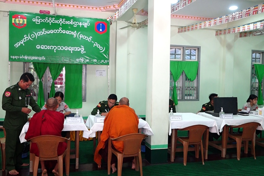 ကချင်ပြည်နယ်၊ မြစ်ကြီးနားမြို့ပေါ်ရှိ သံဃာတော်များအား ယနေ့နံနက်ပိုင်းတွင် မြောက်ပိုင်းတိုင်းစစ်ဌာနချုပ် နယ်လှည့်ဆေးကုသရေးအဖွဲ့က မြစ်ကြီးနားမြို့ရှိ မင်္ဂလာသုခကျောင်းတိုက်၌ ကျန်းမာရေးစောင့်ရှောက်မှုလုပ်ငန်းများ ဆောင်ရွက်ပေးသည်။