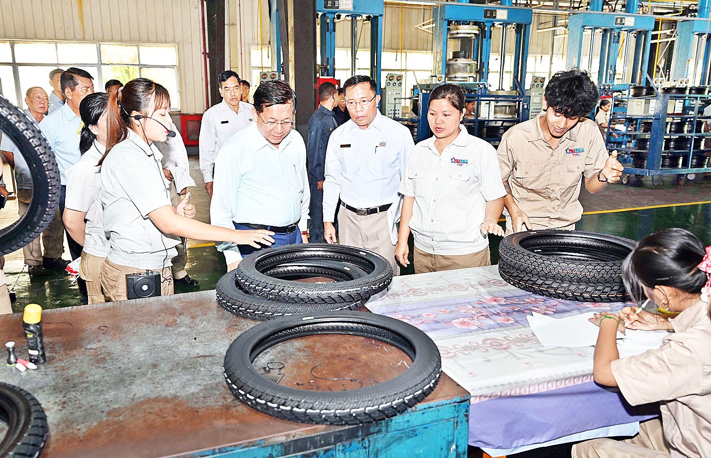 ဦးစွာ နိုင်ငံတော်စီမံအုပ်ချုပ်ရေးကောင်စီဥက္ကဋ္ဌ နိုင်ငံတော်ဝန်ကြီးချုပ်နှင့်အဖွဲ့ဝင်များသည် စက်ရုံအတွင်းရှိ မော်တော်ဆိုင်ကယ်တာယာနှင့်ကျွတ်ထုတ်လုပ်သည့် အလုပ်ရုံသို့ရောက်ရှိပြီး တာယာနှင့်ကျွတ်များ ထုတ်လုပ်နေမှု၊ တာယာအရည်အသွေး စစ်ဆေးနေမှုတို့ကို ကြည့်ရှုစစ်ဆေးပြီး တာဝန်ရှိသူများ၏ တင်ပြချက်များအပေါ် လိုအပ်သည်များ မှာကြားသည်။