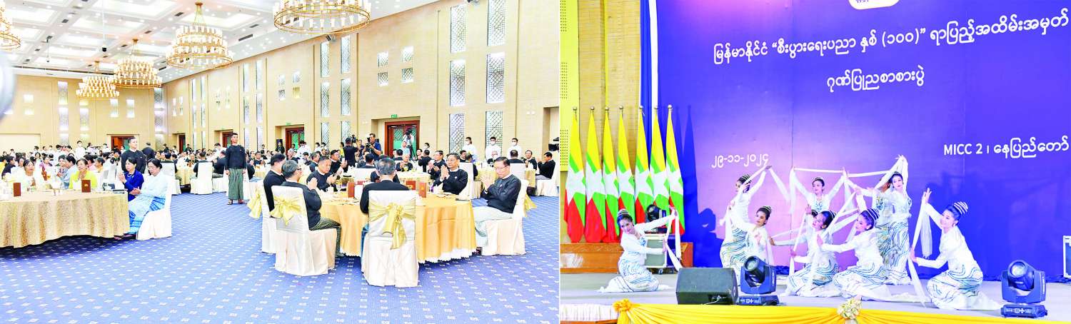 မြန်မာနိုင်ငံ “စီးပွားရေးပညာနှစ် (၁၀၀)’’ ရာပြည့်အထိမ်းအမှတ် ဂုဏ်ပြုညစာစားပွဲ အခမ်းအနားကို ယနေ့ညပိုင်းတွင် နေပြည်တော်ရှိ မြန်မာအပြည်ပြည်ဆိုင်ရာ ကွန်ဗင်းရှင်းဗဟိုဌာန-၂ (MICC–II) ၌ကျင်းပရာ နိုင်ငံတော်စီမံအုပ်ချုပ်ရေးကောင်စီ ဒုတိယဥက္ကဋ္ဌ ဒုတိယဝန်ကြီးချုပ် ဒုတိယဗိုလ်ချုပ်မှူးကြီး စိုးဝင်း တက်ရောက်ချီးမြှင့်သည်။