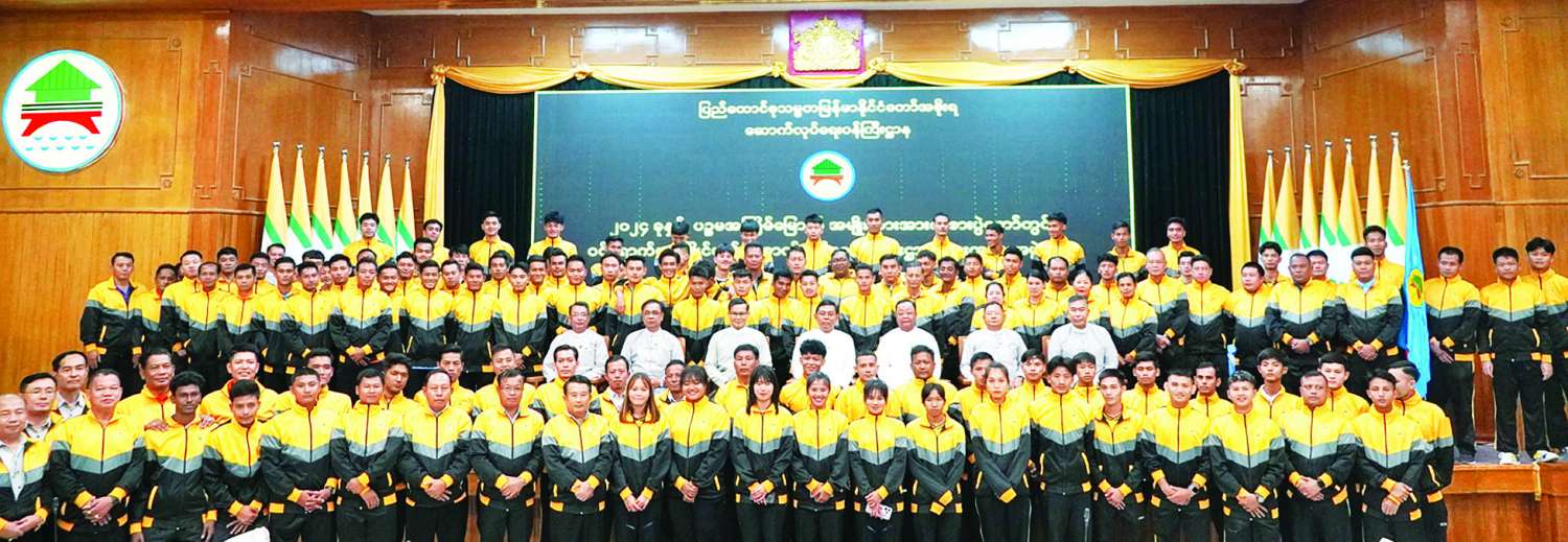၂၀၂၄ ခုနှစ် ပဉ္စမအကြိမ် အမျိုးသားအားကစားပွဲတော်သို့ ဝင်ရောက်ယှဉ်ပြိုင်မည့် ဆောက်လုပ်ရေးဝန်ကြီးဌာနကိုယ်စားပြု အားကစားသမားများအား အောင်နိုင်ရေးအလံ အပ်နှင်းခြင်းအခမ်းအနားကို ယနေ့တွင် နေပြည်တော်ဆောက်လုပ်ရေးဝန်ကြီးဌာန စုဝေးခန်းမ၌ကျင်းပရာ ပြည်ထောင်စုဝန်ကြီး ဦးမျိုးသန့်၊ ဒုတိယဝန်ကြီး ဦးဝင်းဖေနှင့် တာဝန်ရှိသူများ၊ အားကစားနည်းအလိုက် အုပ်ချုပ်သူများ၊ နည်းပြများ၊ ပြိုင်ပွဲဝင်အားကစားသမားများ တက်ရောက်ကြသည်။