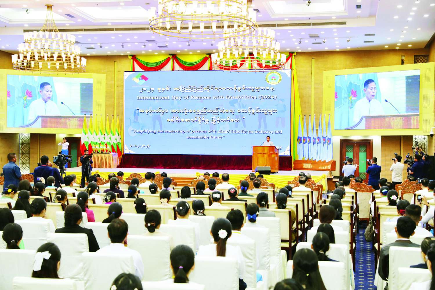 ၂၀၂၄ ခုနှစ်၊ အပြည်ပြည်ဆိုင်ရာ မသန်စွမ်းသူများနေ့အထိမ်းအမှတ်အခမ်းအနားကို ယနေ့နံနက်ပိုင်းတွင် နေပြည်တော်ရှိ မြန်မာအပြည်ပြည်ဆိုင်ရာကွန်ဗင်းရှင်းဗဟိုဌာန-၂ (MICC-II) ၌ ကျင်းပရာ မသန်စွမ်းသူများ၏ အခွင့်အရေးများဆိုင်ရာ အမျိုးသားကော်မတီဥက္ကဋ္ဌ နိုင်ငံတော်စီမံအုပ်ချုပ်ရေးကောင်စီ ဒုတိယဥက္ကဋ္ဌ ဒုတိယဝန်ကြီးချုပ် ဒုတိယဗိုလ်ချုပ်မှူးကြီး စိုးဝင်း တက်ရောက်အမှာစကား ပြောကြားသည်။