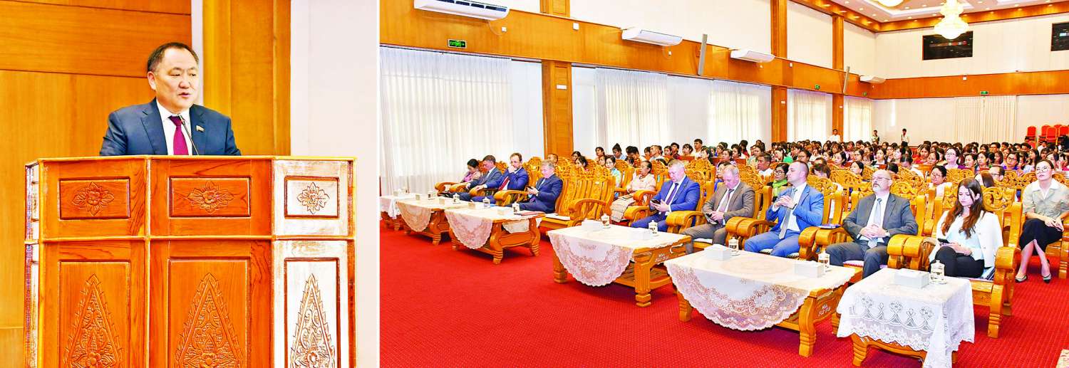 ရုရှားဖက်ဒရေးရှင်းနိုင်ငံ ဒူးမားလွှတ်တော်ဒုတိယဥက္ကဋ္ဌ H.E.Mr.Sholban Kara-Ool သည် ယနေ့မွန်းလွဲပိုင်းတွင် Naypyitaw State Academy (NSA) မှ ကျောင်းသား ကျောင်းသူများအား “Russia and friendly countries in multipolar world” ခေါင်းစဉ် ဖြင့် သင်ခန်းစာပို့ချသည်။
