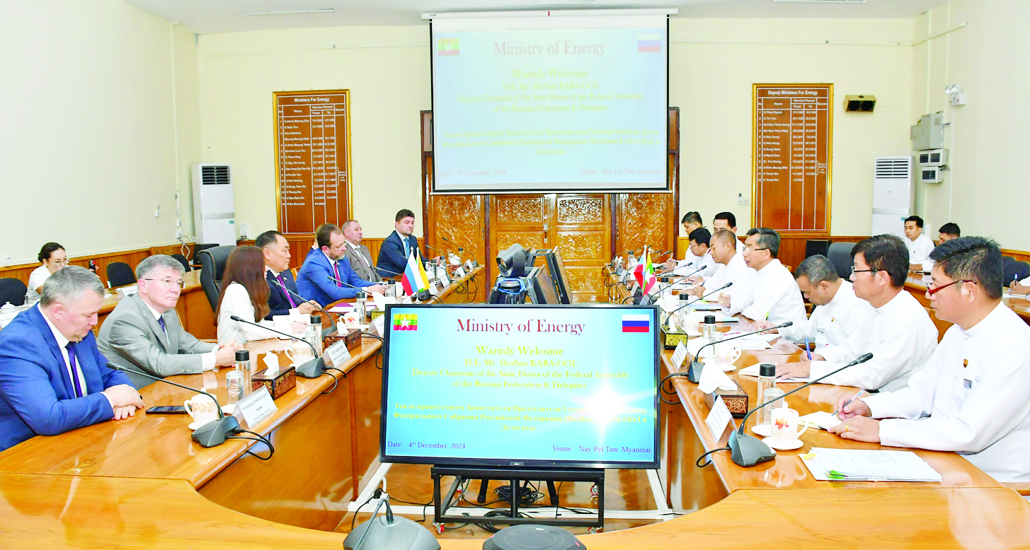 စွမ်းအင်ဝန်ကြီးဌာန ပြည်ထောင်စုဝန်ကြီး ဦးကိုကိုလွင်သည် ရုရှားဖက်ဒရေးရှင်းနိုင်ငံ ဒူးမားလွှတ်တော်ဒုတိယဥက္ကဋ္ဌ H.E. Mr. Sholban Kara-Ool ဦးဆောင်သည့်ကိုယ်စားလှယ်အဖွဲ့ကို ယနေ့နံနက်ပိုင်းတွင် စွမ်းအင်ဝန်ကြီးဌာန အစည်းအဝေးခန်းမ၌ လက်ခံတွေ့ဆုံသည်။