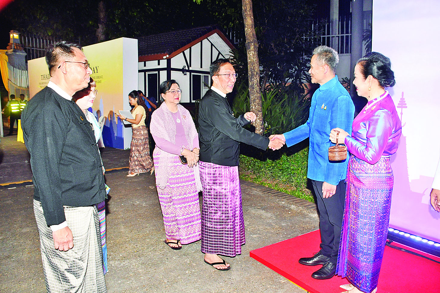 ထိုင်းနိုင်ငံဘုရင်မင်းမြတ် ဘူမိဘော အဒူလျာဒက်ဂျ်၏ မွေးနေ့၊ ထိုင်းနိုင်ငံ၏ အမျိုးသားနေ့နှင့် Thailand's Father's Day အထိမ်းအမှတ် ဧည့်ခံပွဲအခမ်း အနားကို ယနေ့ညနေ ၅ နာရီခွဲတွင် ရန်ကုန်မြို့ရှိ မြန်မာနိုင်ငံဆိုင်ရာ ထိုင်းနိုင်ငံသံအမတ်ကြီးနေအိမ်၌ကျင်းပရာ ဒုတိယဝန်ကြီးချုပ်နှင့် စီမံကိန်းနှင့်ဘဏ္ဍာရေးဝန်ကြီးဌာန ပြည်ထောင်စုဝန်ကြီး ဦးဝင်းရှိန်နှင့်ဇနီးတို့ တက်ရောက်ကြသည်။