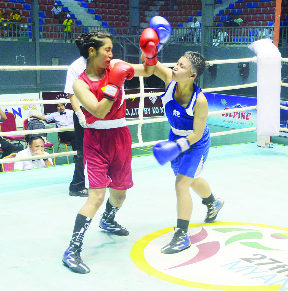 အမျိုးသမီး ကီလို (၅၀) တန်း လက်ဝှေ့ပြိုင်ပွဲတွင် မန္တလေးတိုင်းဒေသကြီးမှ ခိုင်သဇင်ထွန်းက ကရင်ပြည်နယ်မှ အေးမြသီတာဝင်းကိုလည်းကောင်း၊ ရှမ်းပြည်နယ်မှ သဲမြတ်မွန်က ဧရာဝတီတိုင်းဒေသကြီးမှ သင်းသင်းအောင်ကိုလည်းကောင်း၊ ရန်ကုန်တိုင်းဒေသကြီးမှ မြမိုးသူက မွန်ပြည်နယ်မှ လဲ့လဲ့ဖြူကိုလည်းကောင်း အနိုင်ရရှိခဲ့ကြသည်။