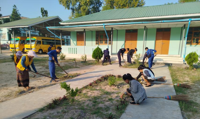 ၂၀၂၄-၂၀၂၅ ပညာသင်နှစ်တွင် တက်ရောက်ပညာသင်ကြားလျက်ရှိသည့် ကျောင်းသား၊ ကျောင်းသူများ အဆင်ပြေချောမွေ့စွာ ပညာသင်ကြားနိုင်ရေးနှင့် စာသင်ကျောင်းများ ဥပဓိရုပ်ကောင်းမွန်စေရေးအတွက် တိုင်းဒေသကြီးနှင့် ပြည်နယ်အသီးသီးရှိ အခြေခံပညာကျောင်းများနှင့် တက္ကသိုလ်များတွင် ကျောင်းပတ်ဝန်းကျင် သန့်ရှင်းသာယာလှပရေးလုပ်ငန်းများကို စုပေါင်းဆောင်ရွက်ပေးလျက်ရှိသည်။