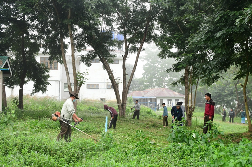 အလားတူ ရှမ်းပြည်နယ်(အရှေ့ပိုင်း)၊ ကျိုင်းတုံမြို့ ပြည်သူ့ဆေးရုံ၌ နယ်မြေခံတပ်မတော်သားများ၊ မြန်မာနိုင်ငံရဲတပ်ဖွဲ့ဝင်များ၊ မီးသတ်တပ်ဖွဲ့ဝင်များ၊ ဌာနဆိုင်ရာဝန်ထမ်းများ၊ စစ်မှုထမ်းဟောင်းအဖွဲ့ဝင်များ၊ ပြည်သူ့စစ်(ဌာနေ)တပ်ဖွဲ့ဝင်များ၊ လူမှုရေးအသင်းအဖွဲ့များက ဆေးရုံဝန်း အတွင်း/အပြင်ရှိ ချုံနွယ်ပေါင်းမြက်များ ခုတ်ထွင်ရှင်းလင်းခြင်း၊ အမှိုက်များရှင်းလင်းခြင်းနှင့် ရေစီးရေလာကောင်းမွန်စေရေး ရေနုတ်မြောင်းများ တူးဖော်ပေးခြင်းများကို စုပေါင်းဆောင်ရွက်ပေးကြသည်။