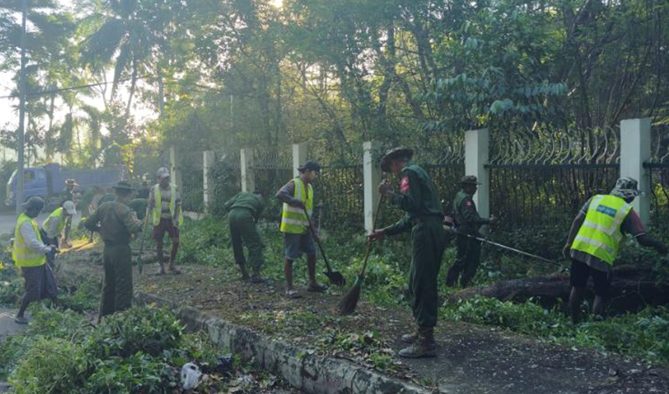 ထိုသို့ ဆောင်ရွက်ပေးလျက်ရှိရာ ယနေ့တွင် နေပြည်တော်ကောင်စီနယ်မြေ၊ ဇေယျာသီရိမြို့နယ်အပါအဝင် မြို့နယ် ၄ မြို့နယ်တို့၌လည်းကောင်း၊ ရန်ကုန်တိုင်းဒေသကြီး၊ လှိုင်မြို့နယ်အပါအဝင် မြို့နယ်(၁၇)မြို့နယ်တို့၌လည်းကောင်း သက်ဆိုင်ရာတိုင်းစစ်ဌာနချုပ်များမှ နယ်မြေခံတပ်မတော်သားများ၊ မြန်မာနိုင်ငံရဲတပ်ဖွဲ့ဝင်များ၊ မီးသတ်တပ်ဖွဲ့ဝင်များ၊ ဌာနဆိုင်ရာဝန်ထမ်းများ၊ ဒေသခံပြည်သူများ၊ လူမှုရေးအသင်းအဖွဲ့များက အခြေခံပညာကျောင်းများနှင့် တက္ကသိုလ်များ အတွင်း/အပြင်ရှိ ချုံနွယ်ပေါင်းမြက်များ ခုတ်ထွင်ရှင်းလင်းခြင်း၊ အမှိုက်များရှင်းလင်းခြင်း၊ ရေစီးရေလာကောင်းမွန်စေရေး ရေနုတ်မြောင်းများ တူးဖော်ပေးခြင်း၊ ရေကန်များတွင် အဘိတ်ဆေးများခတ်ပေးခြင်း၊ ခြင်ခိုအောင်းနိုင်သည့် နေရာများအား ခြင်ဆေးဖျန်းခြင်းနှင့် ကျန်းမာရေးအသိပညာပေးလက်ကမ်းစာစောင်များ ဖြန့်ဝေပေးခြင်းများကို စုပေါင်းဆောင်ရွက်ပေးကြသည်။