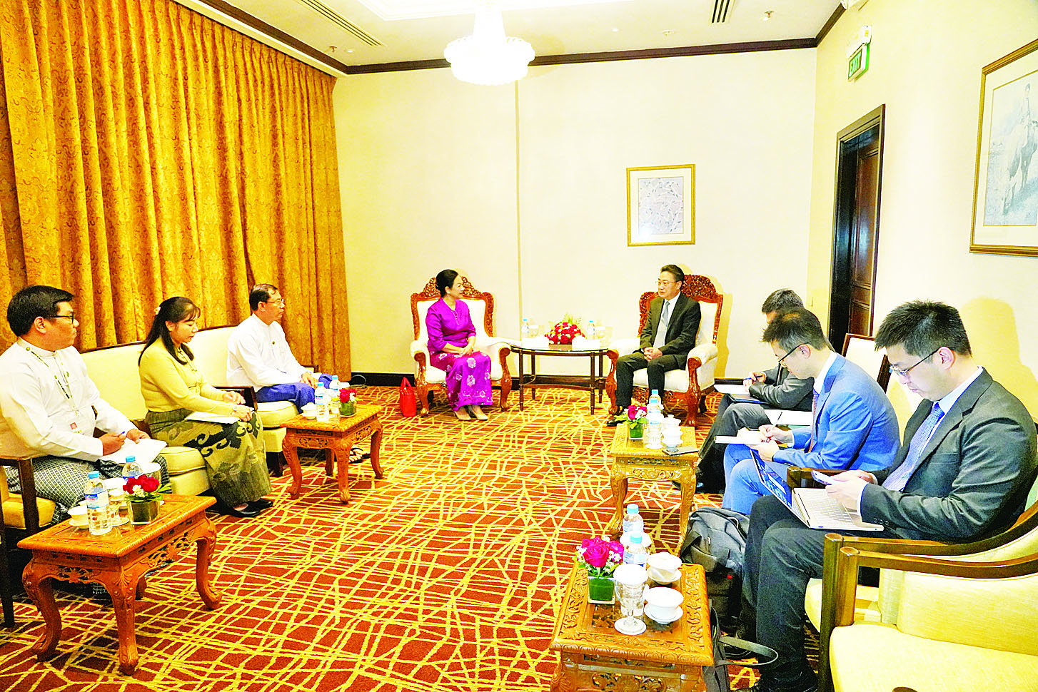 ဟိုတယ်နှင့်ခရီးသွားလာရေးဝန်ကြီးဌာန ပြည်ထောင်စုဝန်ကြီး ဒေါက်တာသက်သက်ခိုင်သည် ယမန်နေ့ညနေပိုင်းက ပဉ္စမအကြိမ် အမျိုးသားအားကစားပွဲတော် ဖွင့်ပွဲအခမ်းအနားတက်ရောက်မည့် ပေကျင်းမြို့အခြေစိုက် အာဆီယံ-တရုတ်စင်တာ (ASEAN China Centre - ACC) ၏ အတွင်းရေးမှူးချုပ် Mr. Shi Zhongjun ဦးဆောင်သည့် ကိုယ်စားလှယ်အဖွဲ့အား ရန်ကုန်မြို့ရှိ ဆီဒိုးနားဟိုတယ်၌ လက်ခံတွေ့ဆုံသည်။
