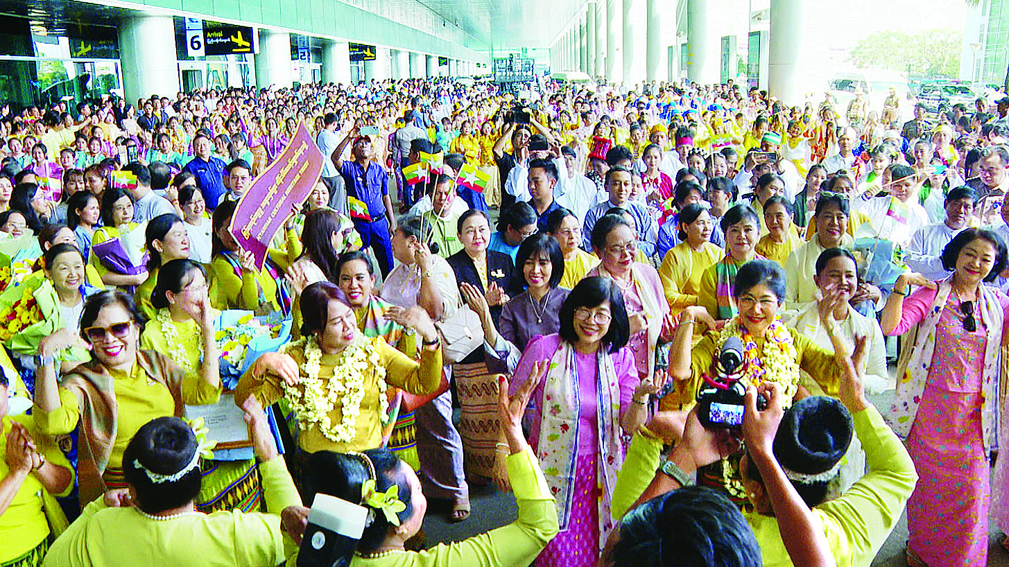 မြန်မာ့ရိုးရာနှစ်သစ်ကူး အတာသင်္ကြန်ပွဲတော်အား ယူနက်စကို၏ ဒြပ်မဲ့ယဉ်ကျေးမှု အမွေအနှစ်စာရင်းတွင် ပါဝင်ခွင့်ရရှိအောင် ကြိုးပမ်းဆောင်ရွက်ခဲ့ကြသည့် မြန်မာ့ယဉ်ကျေးမှုအမွေအနှစ်များ ထိန်းသိမ်းစောင့်ရှောက်ရေးအဖွဲ့ဥက္ကဋ္ဌ ဒေါ်စန္ဒာခင်ဦးဆောင်သည့် မြန်မာကိုယ်စားလှယ်အဖွဲ့သည် ယနေ့နံနက်ပိုင်းတွင် ရန်ကုန်မြို့သို့ လေကြောင်းခရီးဖြင့် ပြန်လည်ရောက်ရှိလာကြသည်။