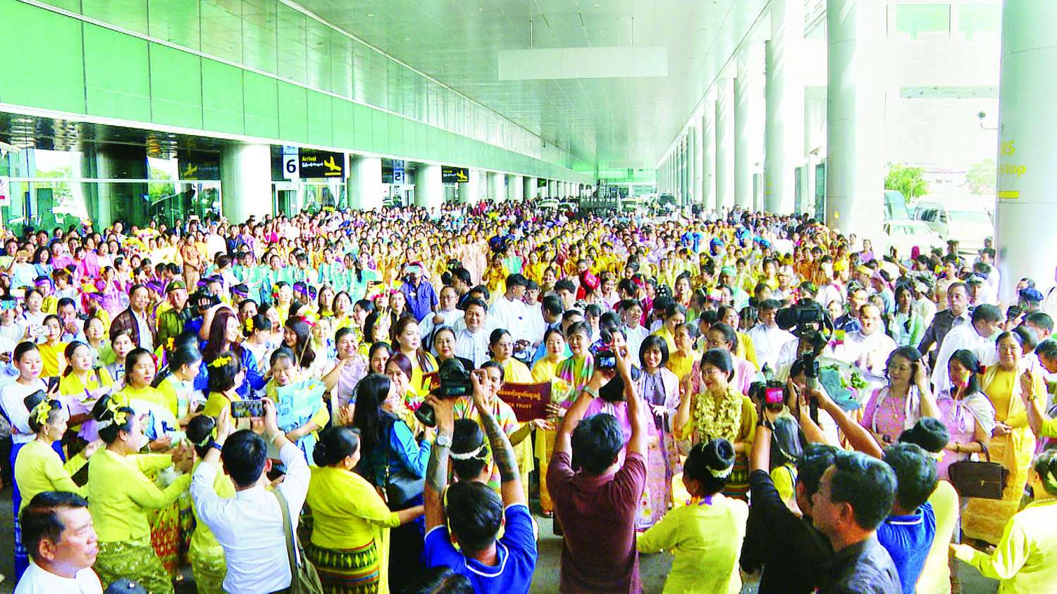 အဆိုပါ မြန်မာကိုယ်စားလှယ်အဖွဲ့အား ရန်ကုန်တိုင်းဒေသကြီးဝန်ကြီးချုပ် ဦးစိုးသိန်းနှင့်ဇနီး၊ တိုင်းဒေသကြီးဝန်ကြီးများနှင့် ၎င်းတို့၏ဇနီးများ၊ အမျိုးသမီးရေးရာအဖွဲ့၊ မိခင်နှင့်ကလေးစောင့်ရှောက်မှု ကြီးကြပ်ရေးအဖွဲ့နှင့် ရှေးဟောင်းသုတေသနဦးစီးဌာနမှ တာဝန်ရှိသူများ၊ အနုပညာရှင်များ၊ တိုင်းရင်းသားတိုင်းရင်းသူများ၊ ကျောင်းသားကျောင်းသူများ၊ ယိမ်းအဖွဲ့များ၊ အမေများအဖွဲ့၊ ရုပ်ရှင်၊ သဘင်၊ ဂီတ၊ ပန်းချီ၊ ပန်းပု စသောရိုးရာပန်းပညာရှင်များ၊ ဝံသာနုအသင်းအဖွဲ့များ၊ တာဝန်ရှိသူများနှင့် ပြည်သူများက စုပေါင်းကြိုဆိုကြသည်။