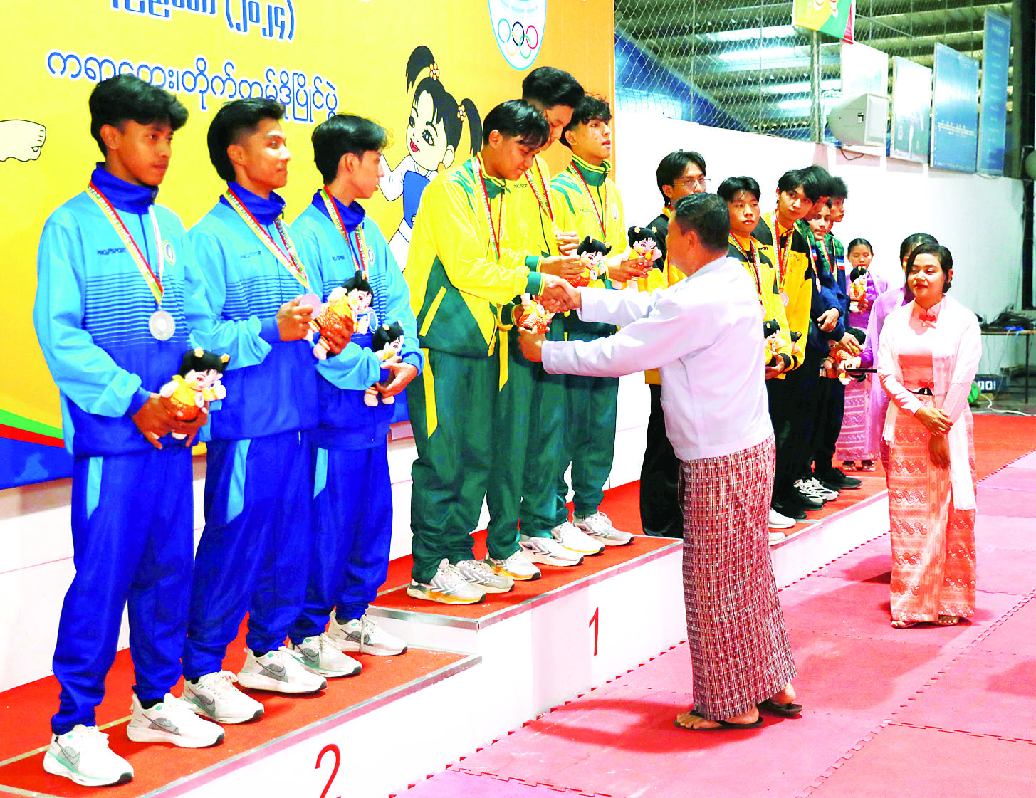 ထို့နောက် ဧရာဝတီတိုင်းဒေသကြီးအစိုးအရအဖွဲ့ လူမှုရေးရာဝန်ကြီး ဦးခင်မောင်ကြည်က အမျိုးသားသံလုံးပစ်ပြိုင်ပွဲတွင် ပထမဆုရရှိသည့် မကွေးတိုင်းဒေသကြီး၊ ဒုတိယဆုရရှိသည့် ရန်ကုန်တိုင်းဒေသကြီးနှင့် တတိယဆုရရှိသည့် ဧရာဝတီတိုင်းဒေသကြီးတို့မှ ပြိုင်ပွဲဝင်များကိုလည်းကောင်း၊ မွန်ပြည်နယ်အစိုးရအဖွဲ့ လူမှုရေးရာဝန်ကြီး ဦးစောကြည်နိုင်က အမျိုးသားမီတာ(၁၁၀)တန်း ကျော်ပြိုင်ပွဲတွင် ပထမဆုနှင့် ဒုတိယဆုရရှိသည့် ဧရာဝတီတိုင်းဒေသကြီးနှင့် တတိယဆုရရှိသည့် မကွေးတိုင်းဒေသကြီးတို့မှ ပြိုင်ပွဲဝင်များကိုလည်းကောင်း၊ ချင်းပြည်နယ်အစိုးရအဖွဲ့ လမ်းပန်းဆက်သွယ်ရေးဝန်ကြီး ဦးနေလင်းအောင်က အမျိုးသမီး မီတာ(၁၀၀) တန်းကျော်ပြိုင်ပွဲတွင် ပထမဆုနှင့် ဒုတိယဆုရရှိသည့် ရှမ်းပြည်နယ်နှင့် တတိယဆုရရှိသည့် စစ်ကိုင်းတိုင်းဒေသကြီးတို့မှ ပြိုင်ပွဲဝင်များကိုလည်းကောင်း၊ ကရင်ပြည်နယ်အစိုးရအဖွဲ့ လူမှုရေးရာဝန်ကြီး ဦးစောထွန်းအောင်က အမျိုးသားတန်းမြင့်ခုန်ပြိုင်ပွဲတွင် ပထမဆုရရှိသည့် ကရင်ပြည်နယ်၊ ဒုတိယဆုရရှိသည့် မွန်ပြည်နယ်နှင့် တတိယဆုရရှိသည့် ဧရာဝတီတိုင်းဒေသကြီးတို့မှ ပြိုင်ပွဲဝင်များကိုလည်းကောင်း ဂုဏ်ပြုဆုတံဆိပ်နှင့် အမျိုးသားအားကစားပွဲတော်အထိမ်းအမှတ် အရုပ်များအား ပေးအပ်ချီးမြှင့်ကြသည်။