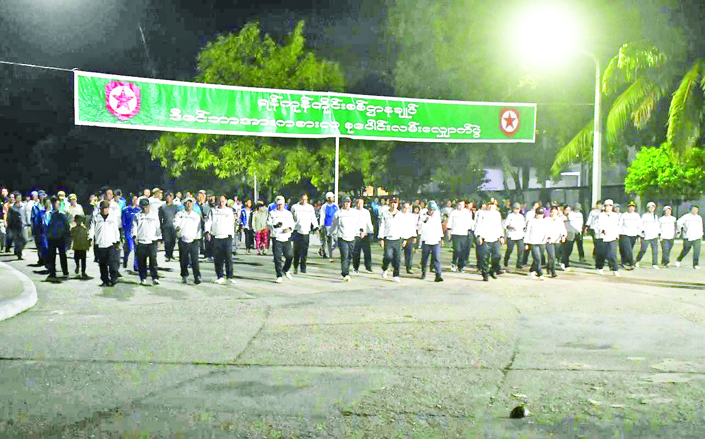 ၂၀၂၄ ခုနှစ်၊ ဒီဇင်ဘာအားကစားလ စုပေါင်းလမ်းလျှောက်ပွဲများကို တိုင်းစစ်ဌာနချုပ်များနှင့် ကွပ်ကဲမှုအောက် တပ်နယ်များ၌ ကျင်းပပြုလုပ်လျက်ရှိရာ ဒီဇင်ဘာ (တတိယပတ်) စုပေါင်းလမ်းလျှောက်ပွဲများကို ယနေ့တွင် အရှေ့ပိုင်းတိုင်းစစ်ဌာနချုပ်နှင့် ကွပ်ကဲမှုအောက် တပ်နယ်များအလိုက် စုပေါင်းလမ်းလျှောက်ပွဲများကို တိုင်းစစ်ဌာနချုပ် စုပေါင်းတန်းစီကွင်းနှင့် တပ်နယ်စုပေါင်းတန်းစီကွင်းများ၌လည်းကောင်း၊ ကမ်းရိုးတန်းဒေသတိုင်းစစ်ဌာနချုပ်နှင့် ကွပ်ကဲမှုအောက် တပ်နယ်များအလိုက် စုပေါင်းလမ်းလျှောက်ပွဲများကို တိုင်းစစ်ဌာနချုပ်အားကစားကွင်းနှင့် တပ်နယ်အားကစားကွင်းများ၌လည်းကောင်း၊ ရန်ကုန်တိုင်းစစ်ဌာနချုပ်နှင့် ကွပ်ကဲမှုအောက် တပ်နယ်များအလိုက် စုပေါင်းလမ်းလျှောက်ပွဲများကို တိုင်းစစ်ဌာနချုပ် စုပေါင်းတန်းစီကွင်းနှင့် တပ်နယ်စုပေါင်းတန်းစီကွင်းများ၌လည်းကောင်း၊ အနောက်တောင်တိုင်းစစ်ဌာနချုပ်၏ စုပေါင်းလမ်းလျှောက်ပွဲကို တိုင်းစစ်ဌာနချုပ် ပုသိမ်တပ်နယ်ဘောလုံးကွင်း၌လည်းကောင်း၊ အနောက်မြောက်တိုင်းစစ်ဌာနချုပ်နှင့် ကွပ်ကဲမှုအောက် တပ်နယ်များအလိုက် စုပေါင်းလမ်းလျှောက်ပွဲများကို တိုင်းစစ်ဌာနချုပ် စုပေါင်းတန်းစီကွင်းနှင့် တပ်နယ်စုပေါင်းတန်းစီကွင်းများ၌လည်းကောင်း၊ အလယ်ပိုင်းတိုင်းစစ်ဌာနချုပ် မန္တလေးတပ်နယ်၏ စုပေါင်းလမ်းလျှောက်ပွဲကို နန်းမြို့တွင်းရှိ မြနန်းစံကျော်ရွှေနန်းတော်ကြီးအနီး၌လည်းကောင်း အသီးသီးကျင်းပပြုလုပ်ကြသည်။