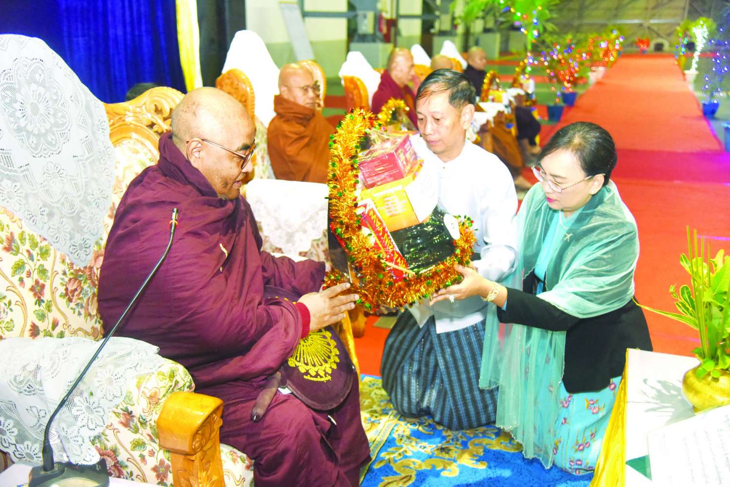 ထို့နောက် သံဃာတော်များအား လှူဖွယ်ပစ္စည်းများ ဆက်ကပ်လှူဒါန်းကြပြီး သဲကုန်းကျောင်းတိုက်၏ ဦးစီးပဓာန နာယကဆရာတော်ထံမှ အနုမောဒနာတရား နာယူကြသည်။