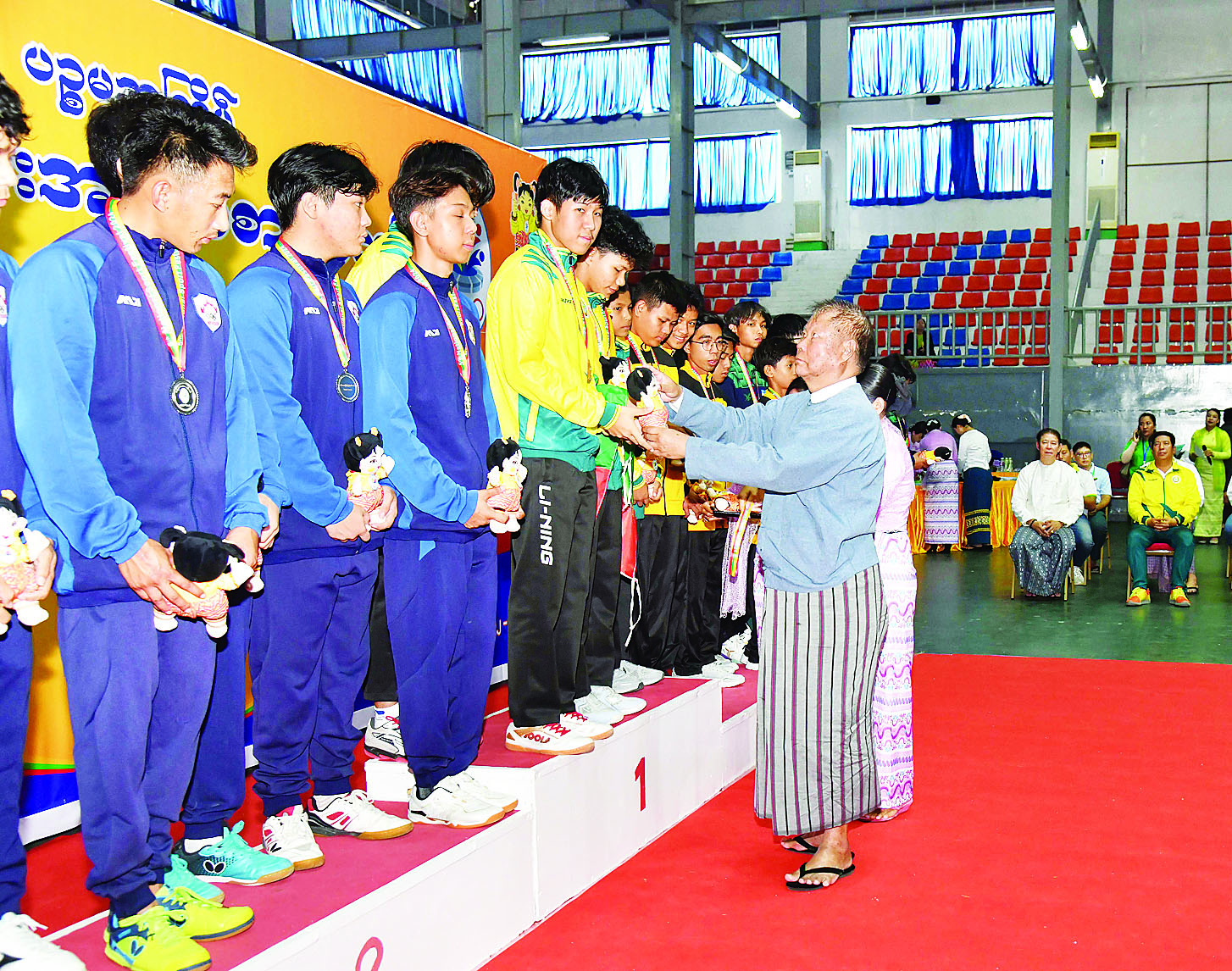 ယင်းနောက် သာသနာရေးနှင့်ယဉ်ကျေးမှုဝန်ကြီးဌာန ဒုတိယဝန်ကြီး ဒေါ်နုမြဇံကတတိယဆုရရှိသည့် ဧရာဝတီတိုင်းဒေသကြီးအသင်းမှ အားကစားသမားများကိုလည်းကောင်း၊ ပြည်ထောင်စုဝန်ကြီး ဦးမင်းသိန်းဇံက ဒုတိယဆုရရှိသည့် ရှမ်းပြည်နယ်အသင်းမှ အားကစားသမားများကိုလည်းကောင်း၊ ပြည်ထောင်စုဝန်ကြီးနှင့် ပြည်ထောင်စုရှေ့နေချုပ် ဒေါက်တာသီတာဦးက ပထမဆုရရှိသည့် မန္တလေးတိုင်းဒေသကြီးအသင်းမှ အားကစားသမားများကိုလည်းကောင်း တစ်ဦးချင်းဂုဏ်ပြုဆုတံဆိပ်နှင့် အမျိုးသားအားကစားပွဲတော် အထိမ်းအမှတ်အရုပ်များအား ပေးအပ်ချီးမြှင့်ကြသည်။