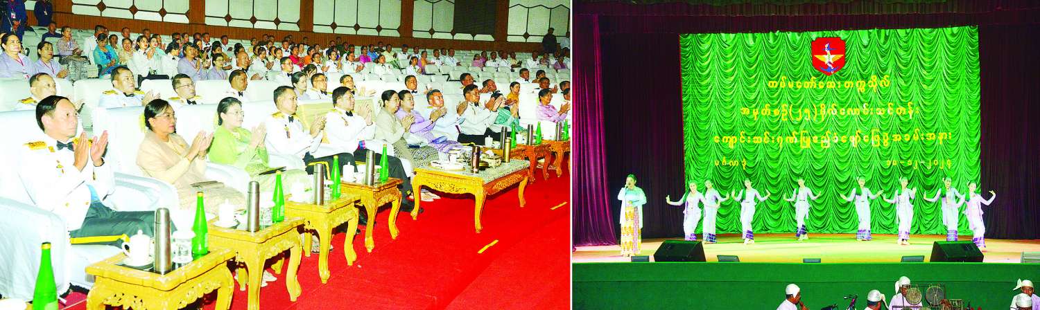 ထို့နောက် နိုင်ငံတော်စီမံအုပ်ချုပ်ရေးကောင်စီဥက္ကဋ္ဌ တပ်မတော်ကာကွယ်ရေး ဦးစီးချုပ်နှင့် အဖွဲ့ဝင်များသည် ကျောင်းဆင်းအရာရှိများနှင့်အတူ ဘွဲ့နှင်းသဘင်ခန်းမဆောင်၌ ပြည်သူ့ဆက်ဆံရေးနှင့် စိတ်ဓာတ်စစ်ဆင်ရေးညွှန်ကြားရေးမှူးရုံး ကွပ်ကဲမှုအောက် မြဝတီတေးဂီတအဖွဲ့၏ တေးသီချင်းများဖြင့် ဂုဏ်ပြုဖျော်ဖြေတင်ဆက်မှုများအား ကြည့်ရှုအားပေးခဲ့ကြောင်း သတင်းရရှိသည်။