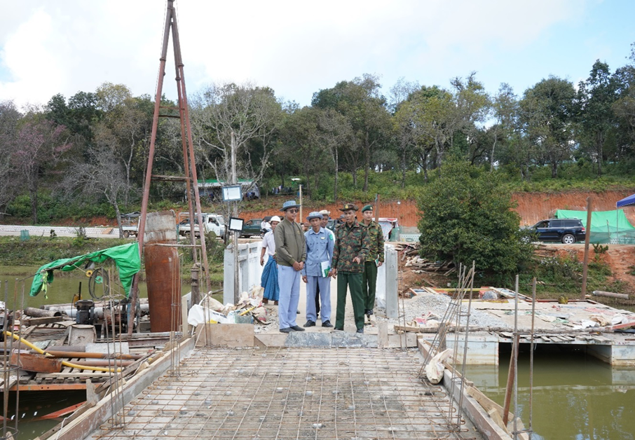 နယ်စပ်ရေးရာဝန်ကြီးဌာန၊ နယ်စပ်ဒေသနှင့်တိုင်းရင်းသားလူမျိုးများ ဖွံ့ဖြိုးတိုးတက်ရေးဦးစီးဌာန ရှမ်းပြည်နယ် ဖွံ့ဖြိုးမှုကြီးကြပ်ရေးရုံးခွဲ(ကျိုင်းတုံ)က တာဝန်ယူဆောက်လုပ်လျက်ရှိသော လွိုင်မွေဒေသ၊ လွိုင်မွေကန်ရှိ အရှည် ၃၅၀ ပေ အကျယ် ၈ ပေ ၁၀ လက်မရှိ လူကူးသံကူကွန်ကရစ် တံတားတည်ဆောက်နေမှုအား ယနေ့မွန်းလွဲပိုင်းတွင် တြိဂံဒေသတိုင်းစစ်ဌာနချုပ်တိုင်းမှူး ဗိုလ်မှူးချုပ် စိုးလှိုင်နှင့် တာဝန်ရှိသူများက သွားရောက်ကြည့်ရှု၍ လိုအပ်သည်များ ပေါင်းစပ်ညှိနှိုင်းဆောင်ရွက်ပေးသည်။