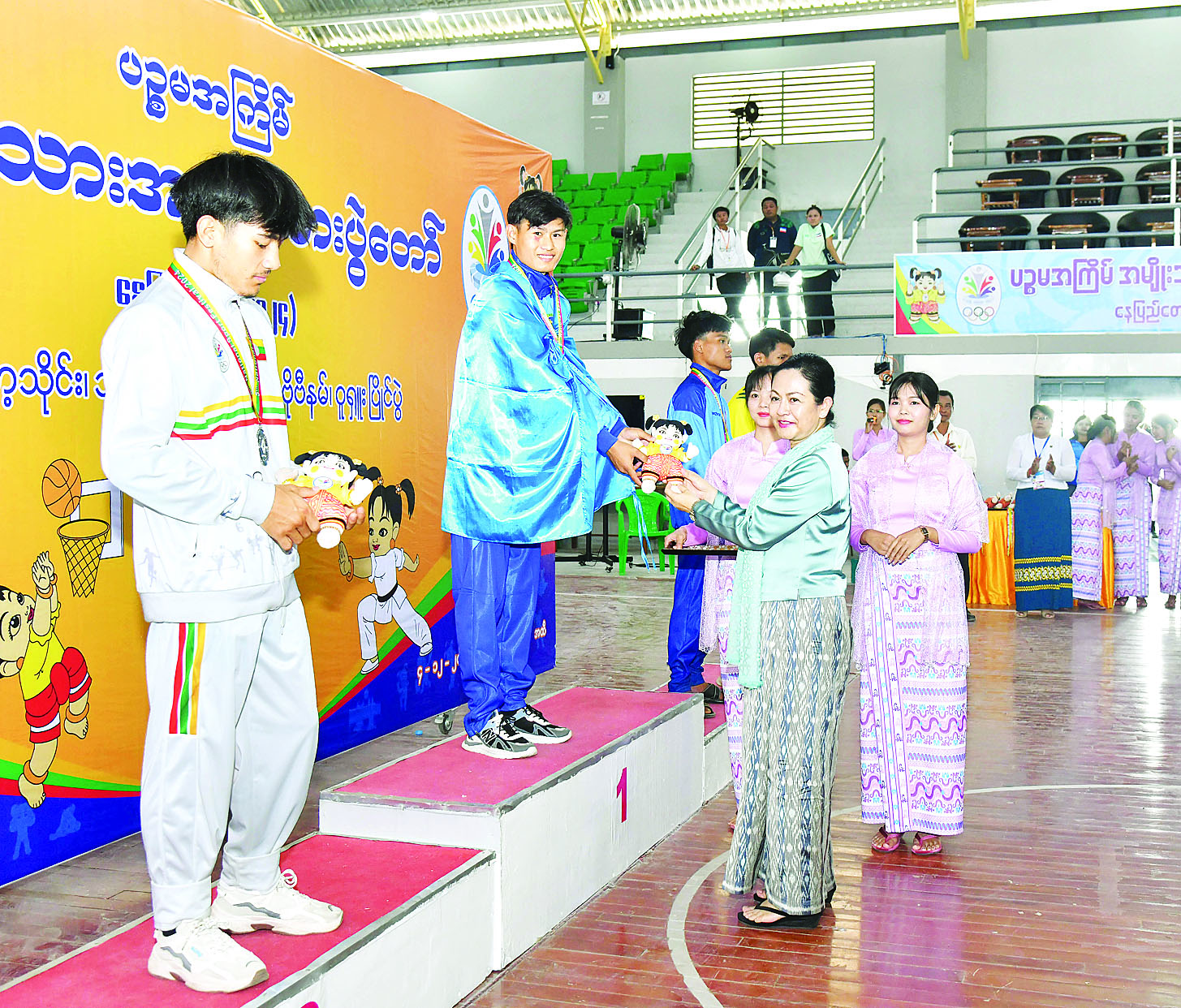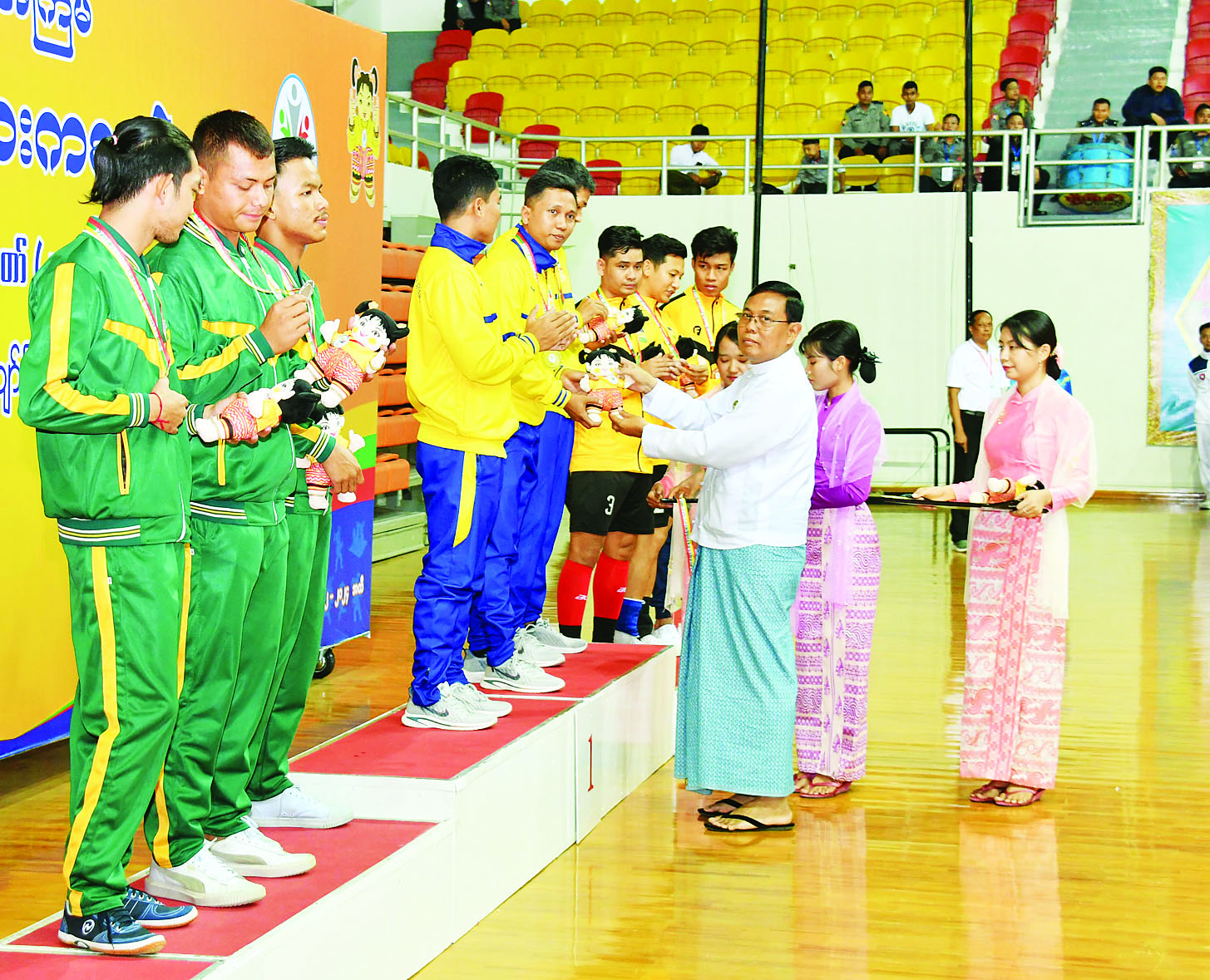ယင်းနောက် ဆုချီးမြှင့်ပွဲအခမ်းအနားကို ဆက်လက်ကျင်းပရာ မွန်ပြည်နယ်အစိုးရအဖွဲ့ လူမှုရေးရာဝန်ကြီး ဦးစောကြည်နိုင်က အမျိုးသမီး (ကျန့်စု+ချန်းစု) ပြိုင်ပွဲတွင် ပထမဆုရရှိသည့် မန္တလေးတိုင်းဒေသကြီး၊ ဒုတိယဆုရရှိသည့် ရှမ်းပြည်နယ်နှင့် တတိယဆုရရှိသည့် မန္တလေးတိုင်းဒေသကြီးတို့မှ ပြိုင်ပွဲဝင်များကိုလည်းကောင်း၊ ပဲခူးတိုင်းဒေသကြီးအစိုးအရအဖွဲ့ လူမှုရေးရာဝန်ကြီး ဦးမျိုးအောင်က အမျိုးသား (နန်းသောင်း+ နန်းကွန့်) ပြိုင်ပွဲတွင် ပထမဆုရရှိသည့် ဧရာဝတီတိုင်းဒေသကြီး၊ ဒုတိယဆုရရှိသည့် ရန်ကုန်တိုင်းဒေသကြီးနှင့် တတိယဆုရရှိသည့် မကွေးတိုင်းဒေသကြီးအသင်းတို့မှ ပြိုင်ပွဲဝင်များကိုလည်းကောင်း၊ စစ်ကိုင်းတိုင်းဒေသကြီး အစိုးရအဖွဲ့ လူမှုရေးရာဝန်ကြီး ဦးညွန့်ဝင်းအောင်က အမျိုးသမီး (နန်းသောင်း+ နန်းကွန့်)ပြိုင်ပွဲတွင် ပထမဆုရရှိသည့် ရန်ကုန်တိုင်းဒေသကြီး၊ ဒုတိယဆုရရှိသည့် ကရင်ပြည်နယ်နှင့် တတိယဆုရရှိသည့် ချင်းပြည်နယ်အသင်းတို့မှ ပြိုင်ပွဲဝင်များကိုလည်းကောင်း၊ ချင်းပြည်နယ်အစိုးရအဖွဲ့ လမ်းပန်းဆက်သွယ်ရေးဝန်ကြီးဌာန ဦးနေလင်းအောင်က အမျိုးသား (သွှေ့လျန့်) ပြိုင်ပွဲတွင် ပထမဆုရရှိသည့် မကွေးတိုင်းဒေသကြီး၊ ဒုတိယဆုရရှိသည့် မွန်ပြည်နယ်နှင့် တတိယဆုရရှိသည့် မန္တလေးတိုင်းဒေသကြီးအသင်းတို့မှ ပြိုင်ပွဲဝင်များကိုလည်းကောင်း ဂုဏ်ပြုဆုတံဆိပ်နှင့် အမျိုးသားအားကစားပွဲတော်အထိမ်းအမှတ်အရုပ်များ ပေးအပ်ချီးမြှင့်ကြသည်။