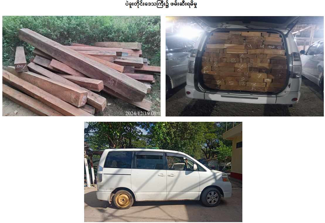တရားမဝင် သစ်မျိုးစုံ၊ စားသောက်ကုန်ပစ္စည်းများ၊ လုပ်ငန်းသုံးပစ္စည်းများ၊ လူသုံးကုန်ပစ္စည်းများနှင့် မော်တော်ယာဉ်များ ဖမ်းဆီးရမိ
